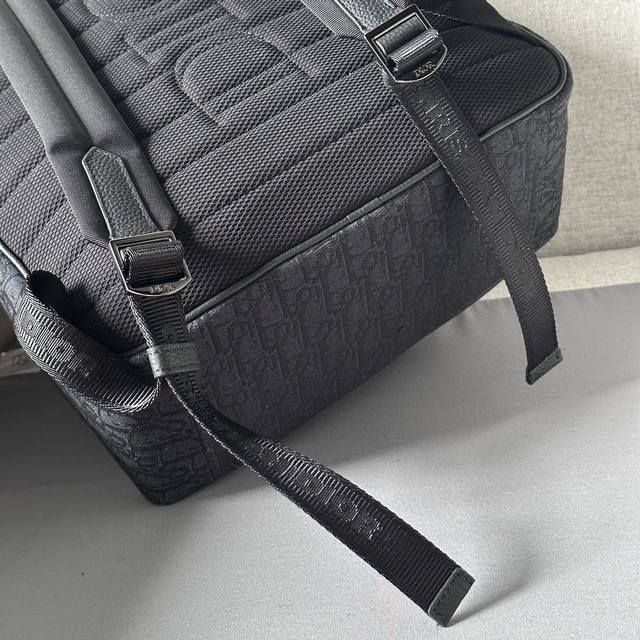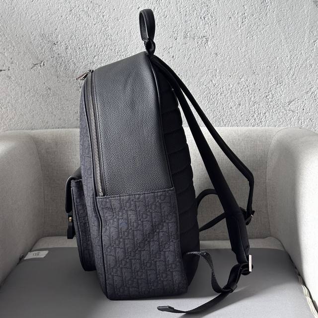 This saddle-style zip-up backpack is a new addition to the 2024 Winter Men's Collection. Featuring a stylish original design that highlights the saddle silhouette, it's crafted from beige and black Oblique printed fabric, accented with black grained calfskin leather details. Spacious and compact, it includes a single compartment for everyday essentials, while the front saddle flap pocket with a Christian Dior logo buckle provides easy access to your wallet, keys, earphones, or phone. Practical and versatile, it's the perfect finishing touch to any outfit. DDD Model 8969 DDD Size 33-43.5-19.5 DDD Body: Cotton, technical fabric and cowhide leather Lining: Technical fabric, cowhide leather Zippered main compartment DDD Interior flat laptop compartment DDD Front flap pocket with Christian Dior logo buckle Two side slip pockets Leather top handle Adjustable padded shoulder strap DDD Back padded mesh fabric with Dior logo Interior embossed Dior logo Includes dust bag DDD _ DDD