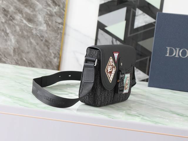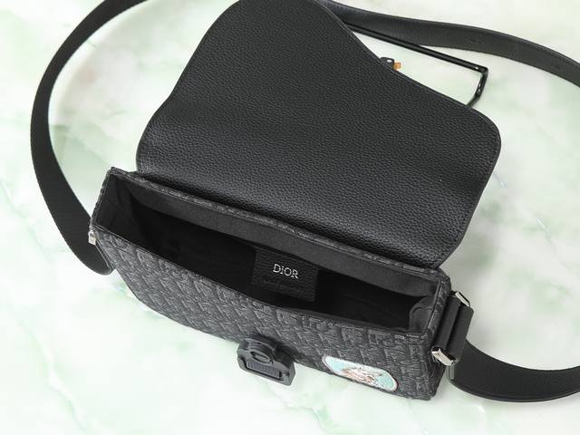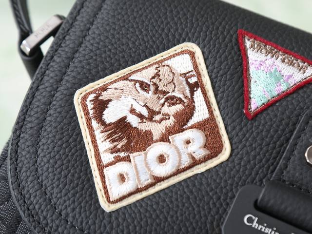 This top-quality replica saddle messenger bag is a new arrival this season, exquisite and stylish. Crafted from black grained calfskin leather with contrasting stitching, it features a flap that embodies the saddle style aesthetic and is accented with aluminum buckles for added sophistication. The mini version offers ample interior space, including a slip pocket for added refinement. It can hold various everyday essentials and comes with an adjustable leather and Christian Dior logo jacquard shoulder strap, allowing for shoulder or crossbody wear. Features include: black grained calfskin leather with contrasting stitching, interior embossed Dior logo, adjustable leather and nylon Christian Dior logo jacquard shoulder strap, flap closure, aluminum buckle with Christian Dior logo and Cd initials, interior slip pocket, and dust bag included. Dimensions: 23 x 18 x 6 cm. Can hold various iPhone models. Item number: 049 Black embroidered fabric.
