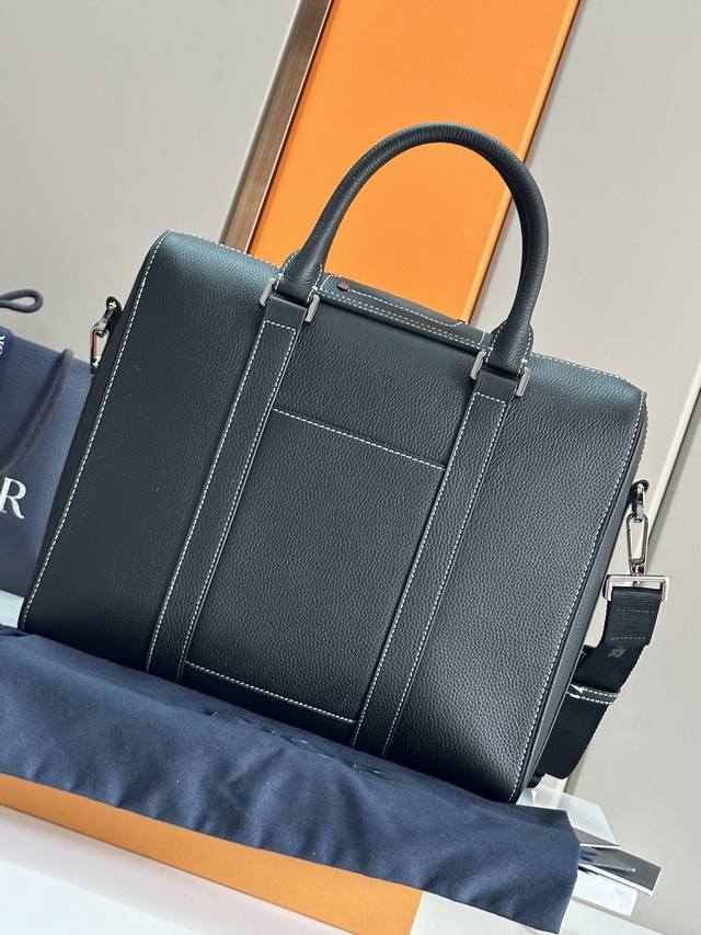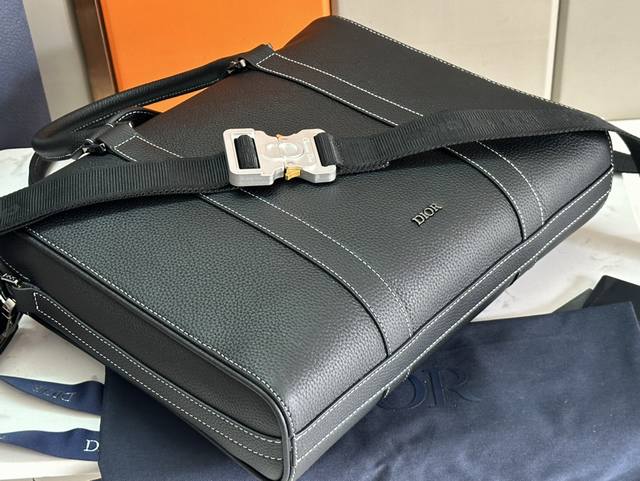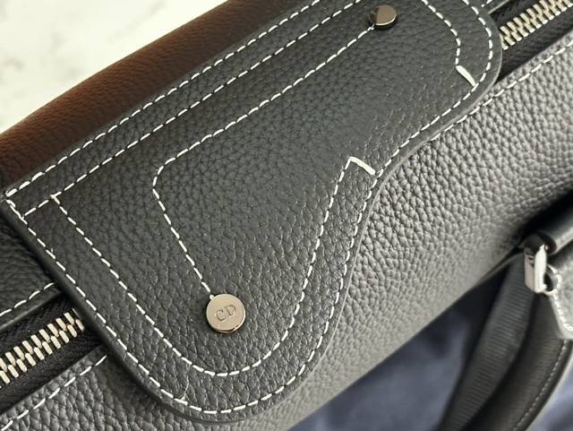 Top Original Single This briefcase, a new addition to the Dior Lingot collection, blends classic elegance with Dior's couture spirit. Inspired by the Dior archives, this structured briefcase is crafted from gray Cd Diamonds canvas and embellished with smooth calfskin detailing and the "Dior" signature on the front. The saddle flap features a zippered compartment and a spacious interior with a padded laptop compartment. It features a foldable top handle and a removable, adjustable shoulder strap with an aluminum buckle for hand, shoulder, or crossbody wear. Grey smooth calfskin leather with metal-finish brass 'Dior' logo on the front. Embossed 'Dior' logo on the inside. Two-way zip closure with magnetic leather saddle flap. Adjustable and detachable nylon jacquard shoulder strap with 'Christian Dior' logo. Aluminum buckle embellished with 'Christian Dior' logo and 'CD' initials. Top handle. Internal laptop compartment. Reference: 93266. Dimensions: 35 x 27 x 6 cm. Main compartment can accommodate a 13-inch laptop, iPad Pro and A4-sized documents.