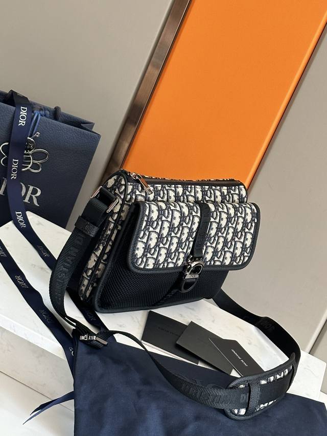 Top-quality original Dior 8 handbag with a shoulder strap, newly launched in the Spring 2024 Men's Collection, has a unique design that highlights modern charm and simple aesthetics. It is carefully crafted from beige and black Oblique print fabric. Rigid design with zippered compartments to store various daily necessities, front flap with Dior 8 buckle and a mesh fabric pocket. Mini style with adjustable Christian Dior logo shoulder strap, can be carried on the shoulder or crossbody.