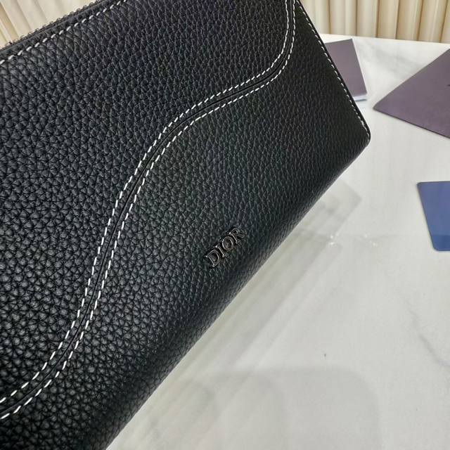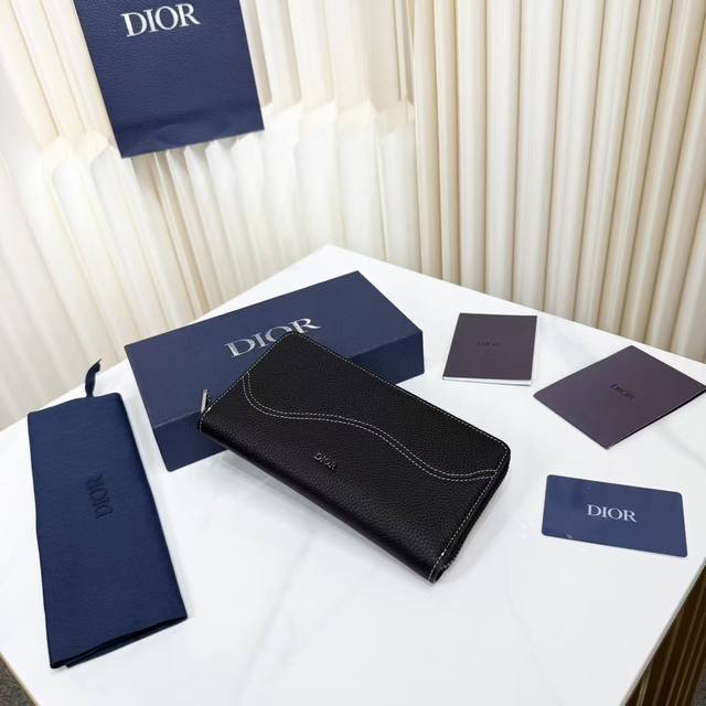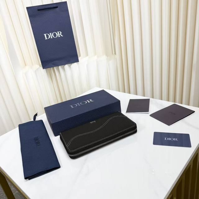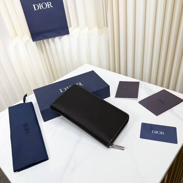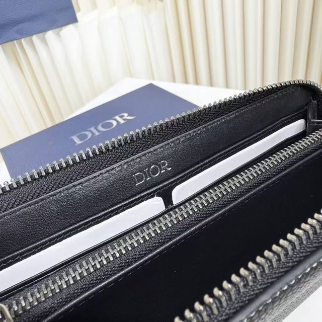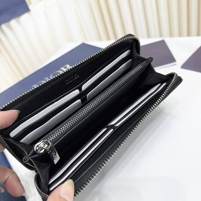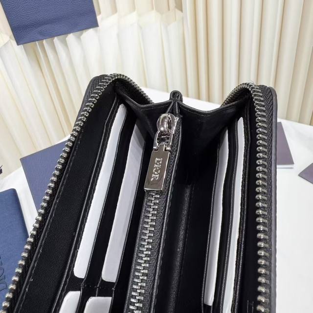 Top-quality original product, guaranteed imported top-grain cowhide, rejecting split leather and microfiber leather. Saddle Long Zip Wallet, Black Fine-Grained Cowhide Leather. Item Number: 2Adbc315Ykk_H00N. This saddle long zip wallet exudes understated elegance. Crafted from black fine-grained cowhide leather with contrasting stitching, it reinterprets the classic saddle shape, while the Dior logo on the front adds a touch of sophistication. A zippered central compartment holds coins, while double cash compartments and 12 card slots provide ample storage. Elegant and spacious, it's the perfect everyday companion. Body: Cowhide leather; Lining: Cowhide leather, technical fabric; Internal zippered compartment ; 12 card slots; Double cash compartment; Front adorned with a metallic copper alloy Dior logo; Interior adorned with an embossed Dior logo; Includes a dust bag; Dimensions: 19.8 x 11 cm (L x H); Can hold bank cards.