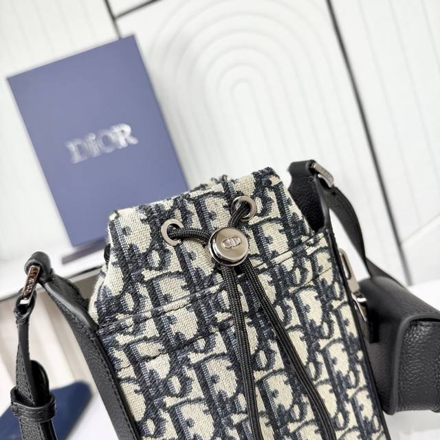 Top-quality original product on the market, genuine copy, comes with box and gift bag. Mini bucket bag in beige and black Oblique printed fabric with black grained calfskin leather. Item number: 2Leca594Yky_H27E. This bucket bag is a new addition to the 2025 Winter Men's Collection, showcasing a stylish look. The structured design is crafted from beige and black Oblique printed fabric, enhanced with black grained calfskin leather details, and adorned with the Dior logo on the front. It features an interior drawstring pouch and two slip pockets for various everyday essentials, and a detachable black grained calfskin leather hanging pouch on one side for earphones, keys, or coins for easy access. The mini style comes with an adjustable leather shoulder strap for shoulder or crossbody wear. DDD Body: Cowhide leather, cotton, technical fabric DDD Lining: Technical fabric, cotton, cowhide leather DDD Main compartment with drawstring and lock engraved with the Dior logo DDD Interior slip pocket DDD Back slip pocket DDD Detachable small pocket with flap and Dior snap closure DDD Adjustable leather shoulder strap DDD Front adorned with a metallic copper alloy Dior logo DDD Interior adorned with an embossed Dior logo DDD Includes dust bag DDD Dimensions: 13.5 x 22 x 7 cm (L x H x W) DDD Shoulder strap length: 85 x 113 cm DDD Shoulder strap tip to bag tip length: 40 x 55 cm DDD Slip pockets can accommodate various phone models DDD