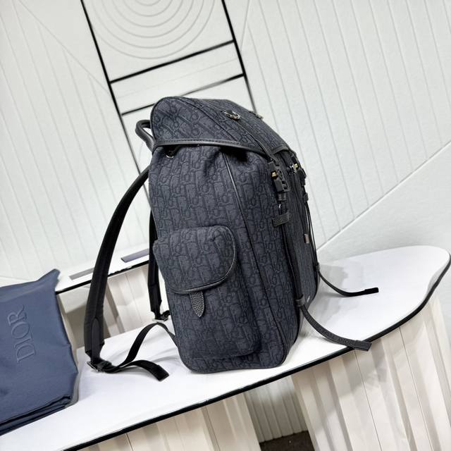 Top-quality original product on the market. Guaranteed imported top-grain cowhide, rejecting split leather and microfiber leather. Dior Hit The Road Flap Backpack. Black Oblique printed fabric and black grained cowhide leather. Item number: 1Esba205Yky_H03E. This Dior Hit The Road flap backpack blends modern style with Dior's haute couture spirit. Crafted from black Oblique printed fabric and other materials, it is adorned with tonal grained cowhide leather details for added sophistication, and features the Dior logo on the front. The flap is fitted with a Cd logo mini aluminum buckle and two Christian Dior logo nylon jacquard straps. It features a spacious main compartment and two magnetic flap pockets on the sides. Practical and versatile, it adds a finishing touch to various casual looks. DDD Body: Cotton, technical fabric, cowhide leather DDD Lining: Technical fabric, cotton, cowhide leather DDD Main compartment with flap and drawstring DDD Mini aluminum buckle and D-ring DDD Interior flat laptop compartment DDD Magnetic flap pockets on the sides DDD Top leather handle DDD Adjustable padded shoulder strap DDD Padded mesh back with Dior logo DDD Metallic copper Dior logo on the front DDD Embossed Dior logo inside DDD Includes dust bag DDD Made in Italy DDD Dimensions: 42 x 43 x 16 cm (L x H x W) DDD Main compartment can hold 1 15-inch laptop, A4 documents, and 1 tablet DDD Side pockets can hold various mobile phone models DDD