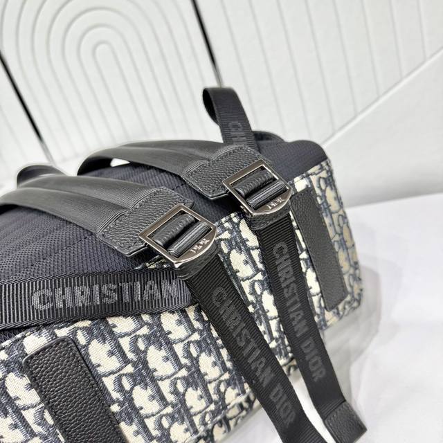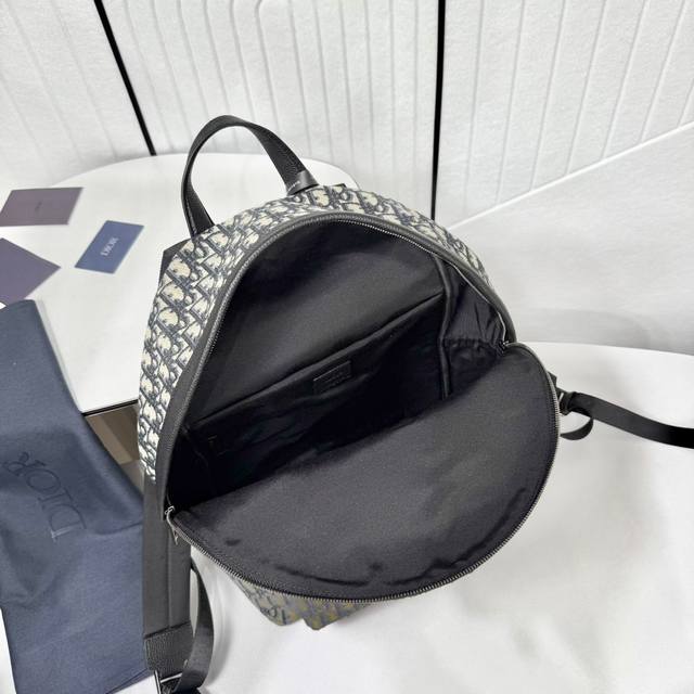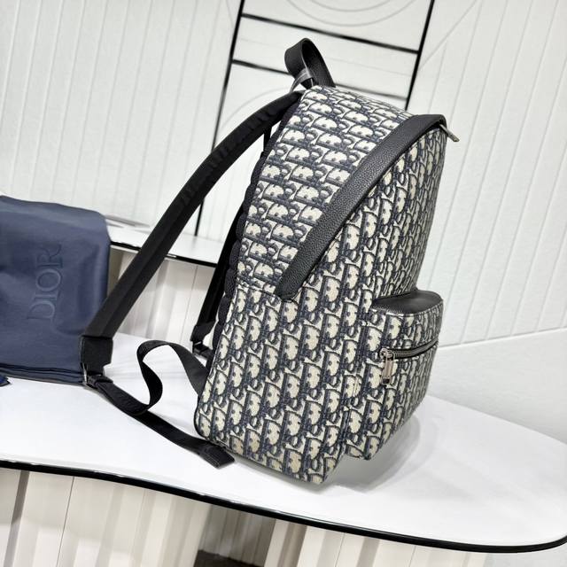 Top-quality original product on the market. Guaranteed imported top-grain cowhide, rejecting split leather and microfiber leather. Rider Backpack, Beige and Black Oblique Print Fabric. Item Number: 1Voba088Yky_H28E. This Rider backpack features a simple silhouette and a classic preppy style exuding vitality. Fashionable and modern, it's meticulously crafted from beige and black jacquard fabric and adorned with an Oblique print. Continuing the classic design, it features exquisite details such as a two-way zipper closure, a large front zippered pocket, and adjustable padded shoulder straps, making it an ideal choice for everyday wear. DDD Body: Technical fabric, cotton, cowhide leather DDD Lining: Technical fabric, cotton DDD Main zippered compartment DDD Flat internal laptop compartment DDD Front zippered pocket DDD Top leather handle DDD Adjustable padded shoulder strap DDD Padded mesh back with Dior logo DDD Dior rubber logo on the front DDD Embossed Dior logo inside DDD Includes dust bag DDD Made in Italy DDD Dimensions: 29.5 x 42.5 x 15 cm (L x H x W) DDD Can hold one 15-inch laptop, A4 documents, and one tablet DDD