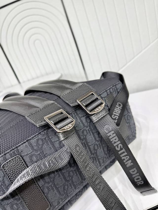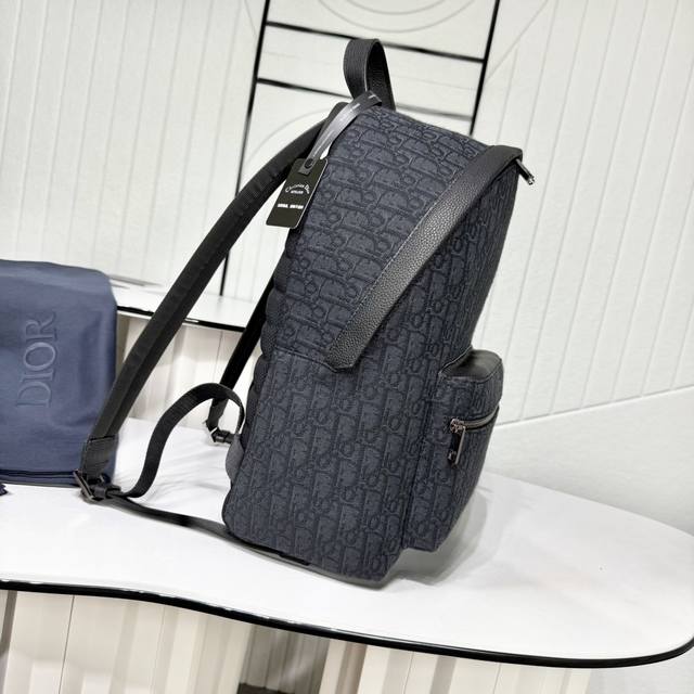 Top-quality original product on the market. Guaranteed imported top-grain cowhide, rejecting split leather and microfiber leather. Rider Backpack, Black, Oblique Print Fabric. Item Number: 1Voba088Yky_H00N. This Rider backpack features a simple silhouette and a classic preppy style exuding vitality. Fashionable and modern, it is meticulously crafted from black jacquard fabric and adorned with an Oblique print. Continuing the classic design, it features a two-way zipper closure, a large front zippered pocket, and adjustable padded shoulder straps, making it an ideal choice for everyday wear. DDD Body: Technical fabric, cotton, cowhide leather DDD Lining: Technical fabric, cotton DDD Main zippered compartment DDD Flat internal laptop compartment DDD Front zippered pocket DDD Top leather handle DDD Adjustable padded shoulder strap DDD Padded mesh back with Dior logo DDD Dior rubber logo on the front DDD Embossed Dior logo inside DDD Includes dust bag DDD Made in Italy DDD Dimensions: 29.5 x 42.5 x 15 cm (L x H x W) DDD Can hold one 15-inch laptop, A4 documents, and one tablet DDD