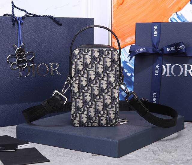 Top-quality original single-handle clutch [Fu][Fu] This clutch features Dior's signature Oblique print. Crafted from a combination of black grained calfskin and beige and black printed canvas, it's embellished with the "Dior" signature and features two practical zippered compartments. The detachable, adjustable shoulder strap, embossed with the "Christian Dior" signature, allows for shoulder or crossbody wear, and a leather handle provides convenient hand-carrying. Beige and black Oblique-print canvas. Brass-finished "Dior" signature on the front. Embossed "Dior" signature on the interior. Black grained calfskin handles. Removable and adjustable shoulder strap in nylon jacquard with the "Christian Dior" signature and black grained calfskin. Zippered compartment accommodates phones up to an iPhone 11 pro Max. Front zippered pocket with two card slots. Carry by hand, over the shoulder, or across the body. Dimensions: 10 cm x 17 cm x 5 cm. Ident No. 93326. Made in Italy.