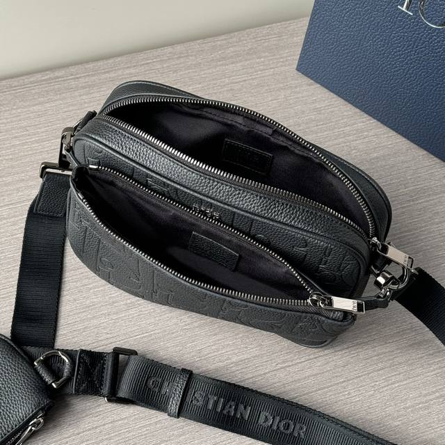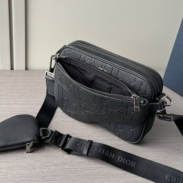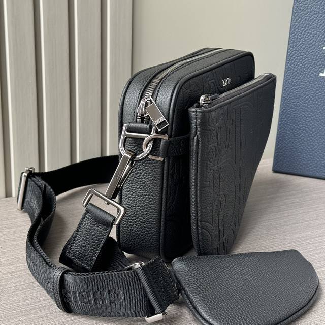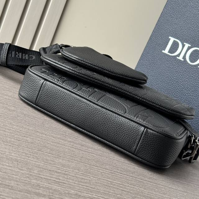 Top-tier boutique item, hottest new style: Dior 3-in-1 embossed leather crossbody bag. This saddle-style three-piece handbag features a striking and versatile design. Crafted from Dior embossed Cd Diamond canvas, it draws inspiration from the Dior archives, with tonal smooth calfskin leather details and the Dior logo enhancing its sophistication. The 3-in-1 design includes a zippered pouch containing a saddle clutch and a Nano saddle clutch, both detachable. Practical and elegant, it comes with an adjustable and detachable shoulder strap for shoulder or crossbody wear. Dior embossed Cd Diamond pattern canvas. Designed by Marc Bohan in 1974, the Cd Diamond pattern reinterprets the initial Cd in a three-dimensional diamond pattern on cotton canvas. Front features a brass-plated Dior logo. Inside is an embossed Dior logo. Top zip closure. Adjustable, detachable Christian Dior logo nylon jacquard shoulder strap with leather details. Detachable saddle clutch with front zipper. Detachable Nano zipper saddle clutch with shoulder strap. Includes dust bag, instruction manual, and gift box. Item number: 1Adpo276Cdp_H42E. Dimensions: 23.3 x 16.5 x 4.3 cm (Length x Height x Width) .