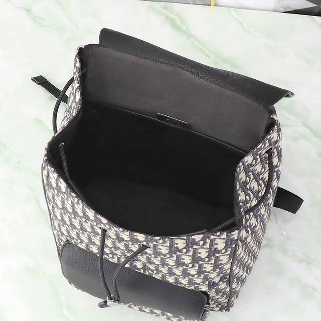Top-tier original! This saddle backpack features a stylish, original design that highlights the saddle style. Crafted from beige and black Oblique printed fabric, it's finished with black grained calfskin leather details and adorned with the Dior logo on the front. Spacious and compact, it includes a compartment for everyday essentials, and a front flap saddle pocket for your wallet, keys, earphones, or phone for easy access. Practical and versatile, it's the perfect finishing touch to any outfit. Beige and black Oblique print; black grained calfskin leather; front adorned with a metallic brass Dior logo; interior adorned with the Dior logo; flap and drawstring design; adjustable padded nylon shoulder strap; leather top handle; back reinforced with quilted technical knit fabric and adorned with the Dior logo; front flap pocket; interior laptop compartment; includes dust bag; made in Italy; dimensions: 41.5 x 28.5 x 15 cm (L x H x W); item number: 1Adba041 (apricot fabric)
