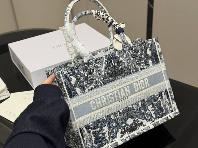 Comes with a folding box and scarf. Original Dior jacquard bag. Dior Book Tote, my favorite tote bag this year. The bag I use most often. Dior bags are so spacious! I put everything in them. Of course, they're a must-have for creating stylish looks. Size: Medium 36cm.