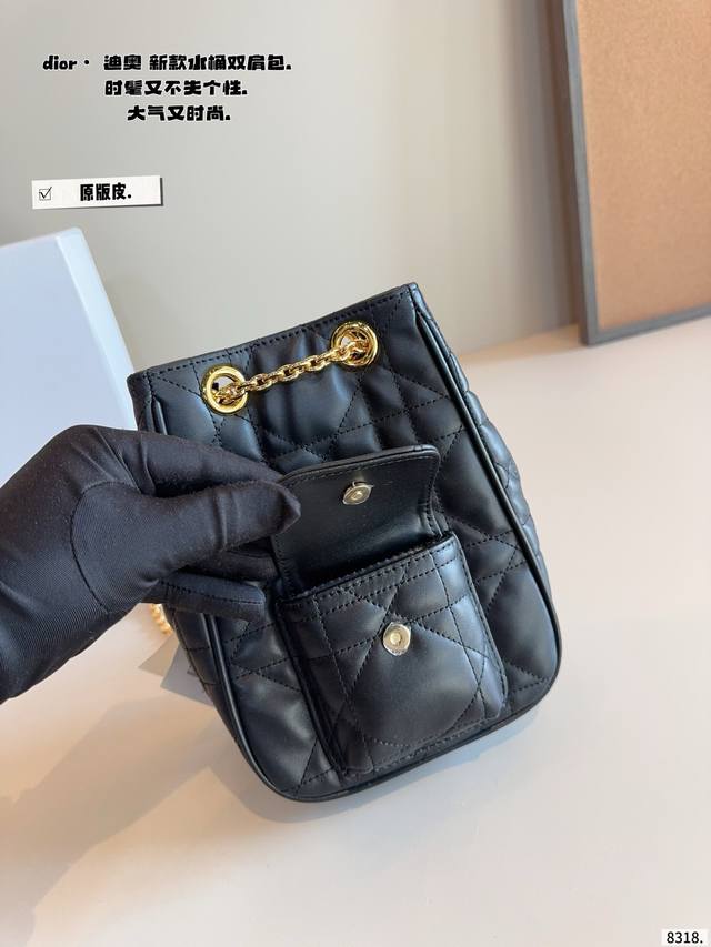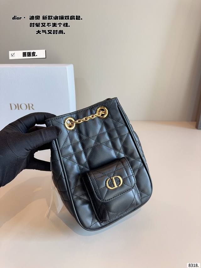 Comes with gift box DDD Dior 25Fw new bucket backpack, super easy to carry DDD Cool and sweet backpack. DDD Looks great just grab it when you go out. Dior's new products are really too appealing. Cest Dior is a bombshell DDD This little bucket is so well-designed DDD The capacity is amazing DDD The bucket size is always on my body. Dimensions: 16*9*22Cm DDD