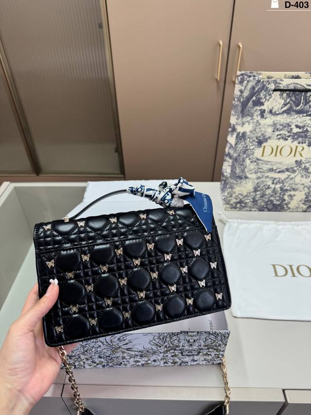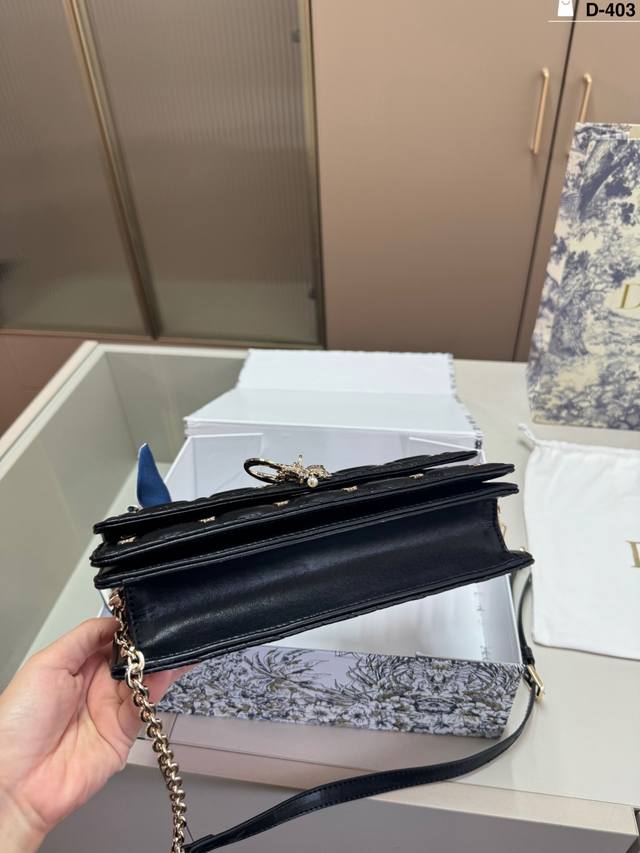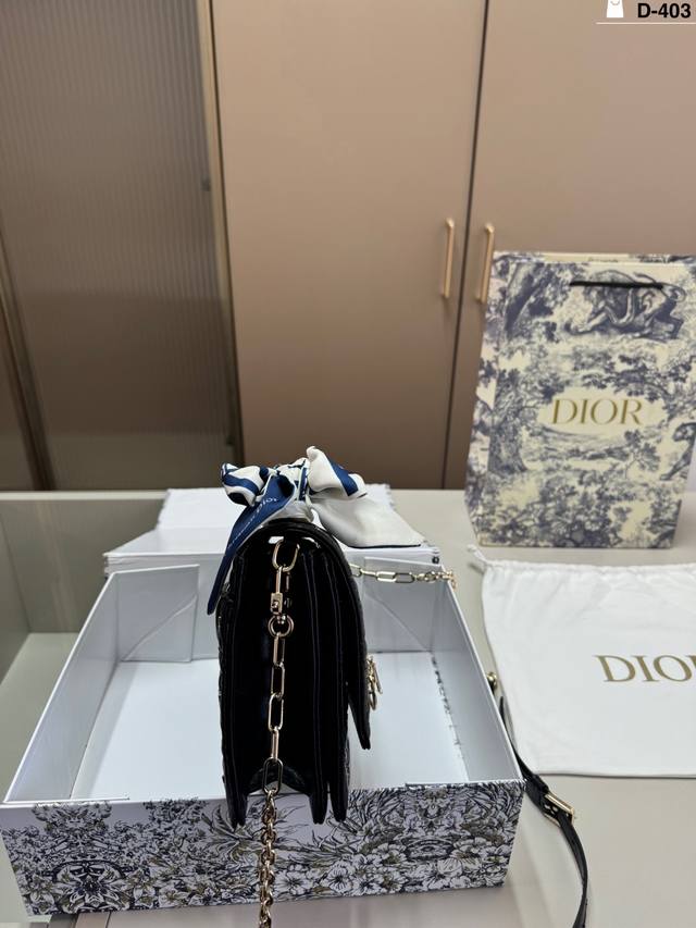 with folding box Dior Summer 25 light blue embroidered Woc chain bag clutch Dio