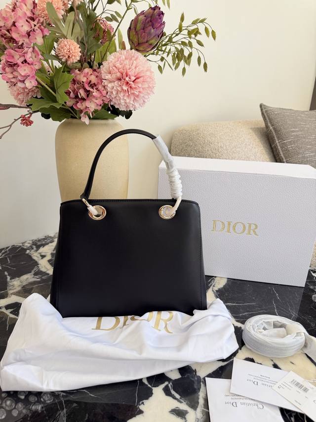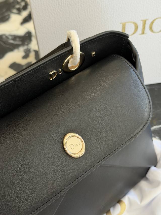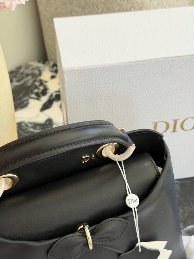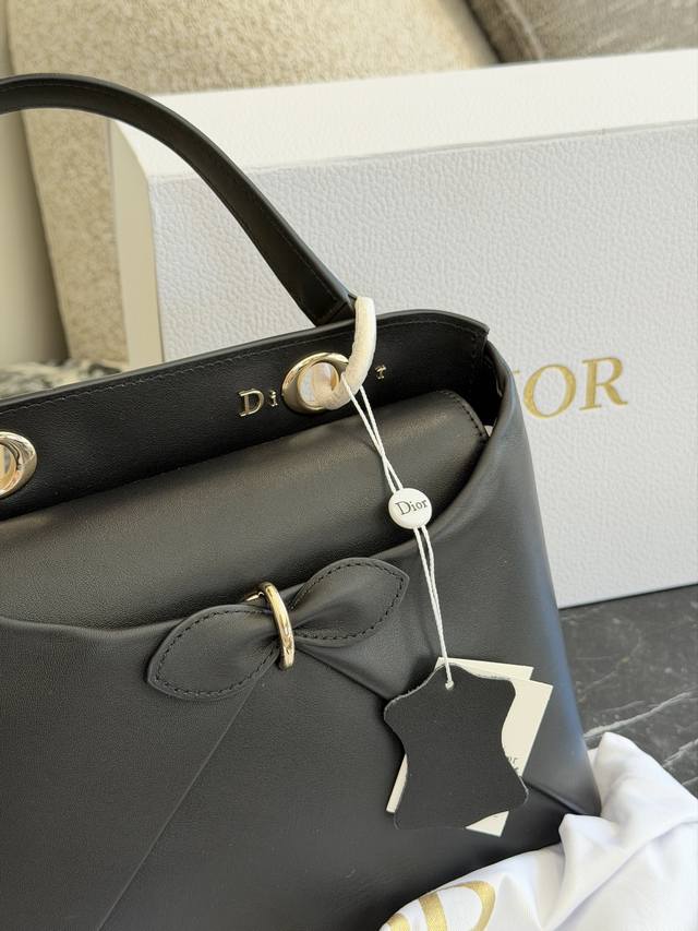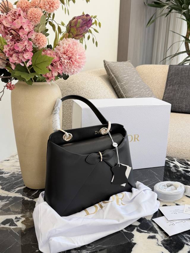 Dior 2026 Spring/Summer Bow Handbag, Original Leather DDD This Dior 2026 Spring/Summer bow handbag, designed by Jonathan Anderson, draws inspiration from elements in the brand's archives. Made of black leather, it features a three-dimensional bow and metal clasp on the front, exuding elegance and distinctiveness. The handle incorporates the "Dior" logo, showcasing impeccable detail. 25cm, comes with box DDD