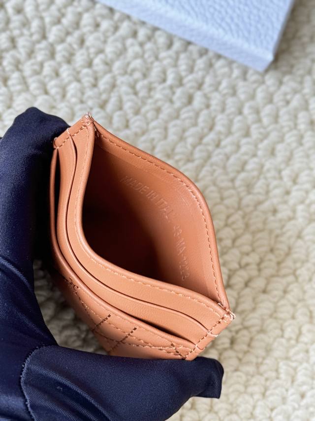 Code: S3103 Made of soft cowhide, decorated with rattan check stitching, and the front is embellished with a "Cd" pearl logo. Elegant and exquisite, with five card slots, suitable for all occasions. Size: 10.5*7.5Cm