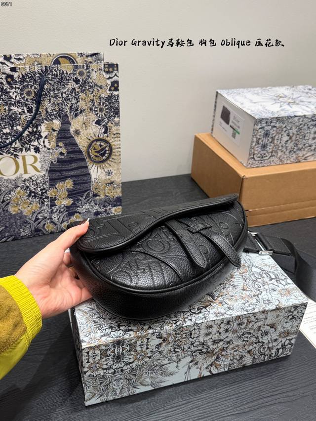 Gift Box Packaging DDD Chip Version! DDD Dior Gravity Saddle Bag, black grained calfskin leather with Oblique embossing, understated yet recognizable. Classic saddle shape with a detachable shoulder strap, perfect for crossbody or hand carry. Great for everyday commutes and casual outings, it can hold all your essentials. Perfect details, practical and stylish, a super popular item from the Dior menswear collection DDD Size: 27*19cm DDD