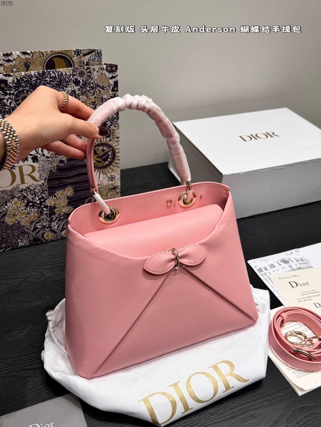 Gift Box Packaging Replica Cowhide Dior 2026 Spring/Summer New Bow Handbag Origi