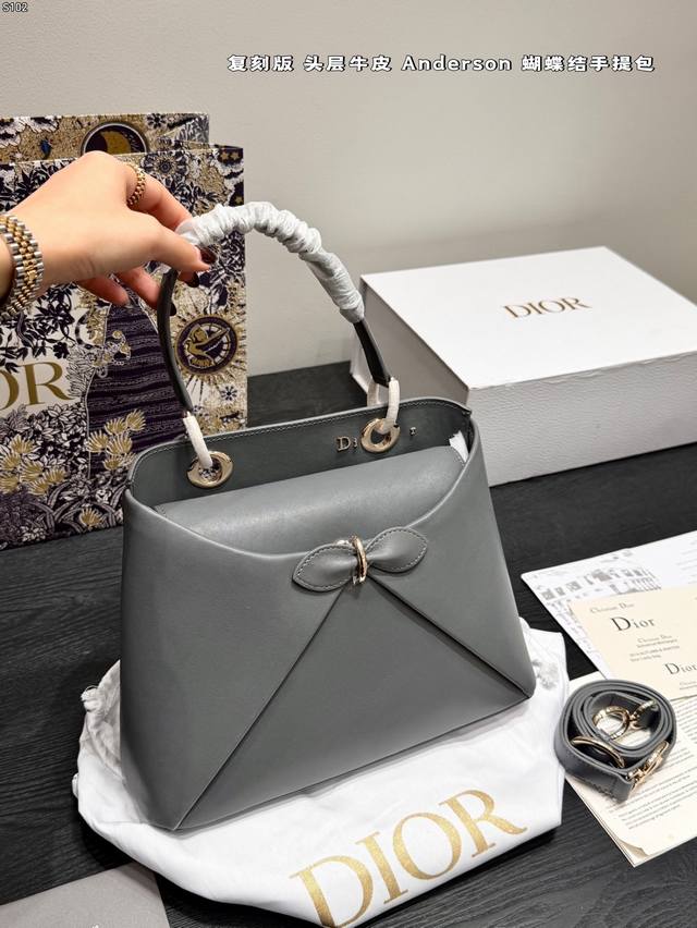 Gift Box Packaging DDD Replica Cowhide DDD Dior 2026 Spring/Summer New Bow Handbag Original Cowhide DDD The Dior 2026 Spring/Summer bow handbag was designed by Jonathan Anderson, inspired by elements from the brand's archives. Made of black leather, it features a three-dimensional bow and metal buckle on the front, elegant and highly recognizable. The handle incorporates the "Dior" lettering, meticulous attention to detail DDD Dimensions: 28*22cm DDD