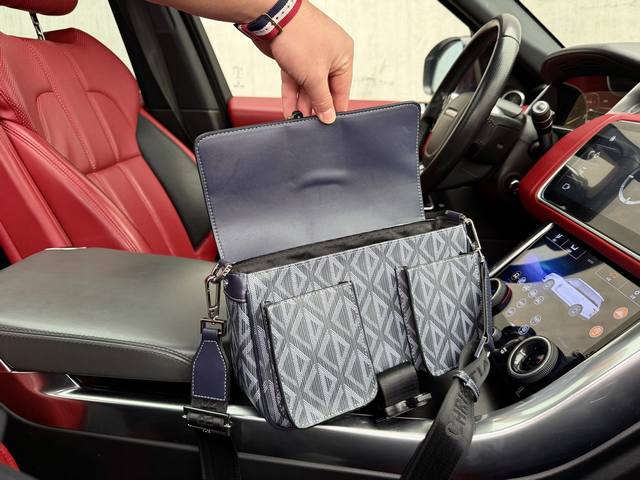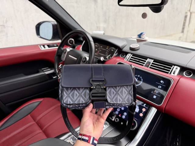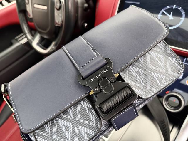High-end new "Dior" shoulder bag, Dior crossbody messenger bag, Dhit The Road. Embossed logo, three-dimensional lines, diamond pattern, adjustable and detachable shoulder strap, canvas and smooth cowhide leather, men's crossbody shoulder bag, Dior blue, imported original canvas fabric, high-definition hardware, logo logo, special lining. Super smooth zipper, super smooth edge painting, exquisite workmanship, every detail is perfect! A must-have for trendy men. Size: 27X17X9Cm. Comes with gift box.