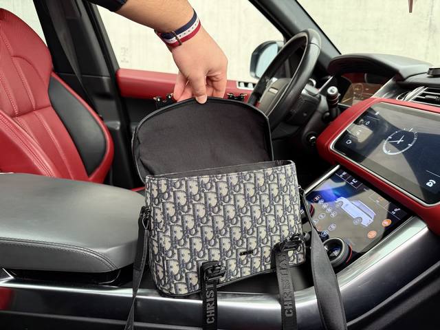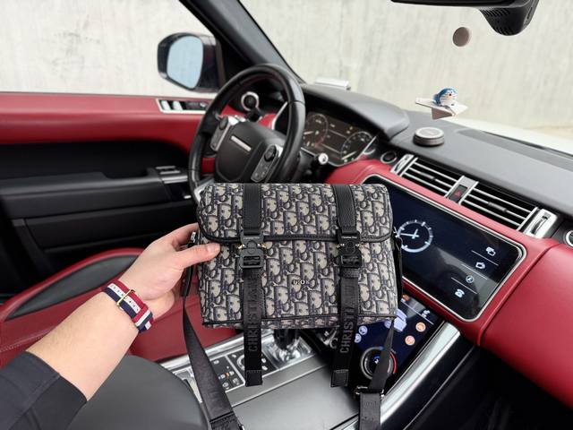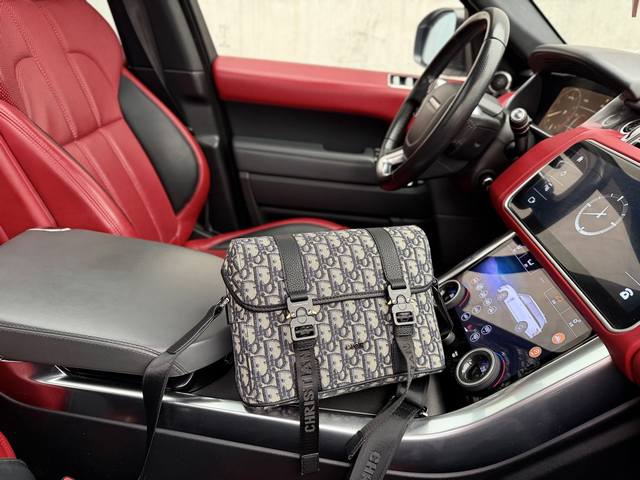 High-end new "Dior" shoulder bag, Dior messenger bag, Dior Hit The Road series brand Cd logo printed messenger bag crossbody bag, cotton shoulder bag, beige and black imported original canvas fabric, high-definition hardware, logo logo, and special lining. Super smooth zipper, super smooth edge painting, exquisite workmanship, every detail is perfect! A must-have for trendy men. Size: 24X18X8Cm. Comes with a folding gift box.