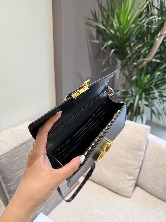 Figure 1: Product Details Introduction: This Miss Montaigne mini chain handbag is a new product in the 2024 winter ready-to-wear series, practical and elegant. Carefully crafted with blue Oblique print fabric, the flap is decorated with a vintage gold-finished metal Cd buckle, inspired by the closure of Christian Dior perfume bottles, and can store a variety of daily necessities. With a top handle and an adjustable chain shoulder strap combined with a leather strap, it can be carried by hand, on the shoulder or cross-body, making it an ideal handbag for creating an everyday look. Main body: cotton, cowhide, technological fabric Lining: cowhide, technological fabric Flap closure Cd buckle 1 internal compartment 1 zipper compartment 6 card slots 1 slip pocket Adjustable and detachable chain shoulder strap decorated with leather strap with exclusive high