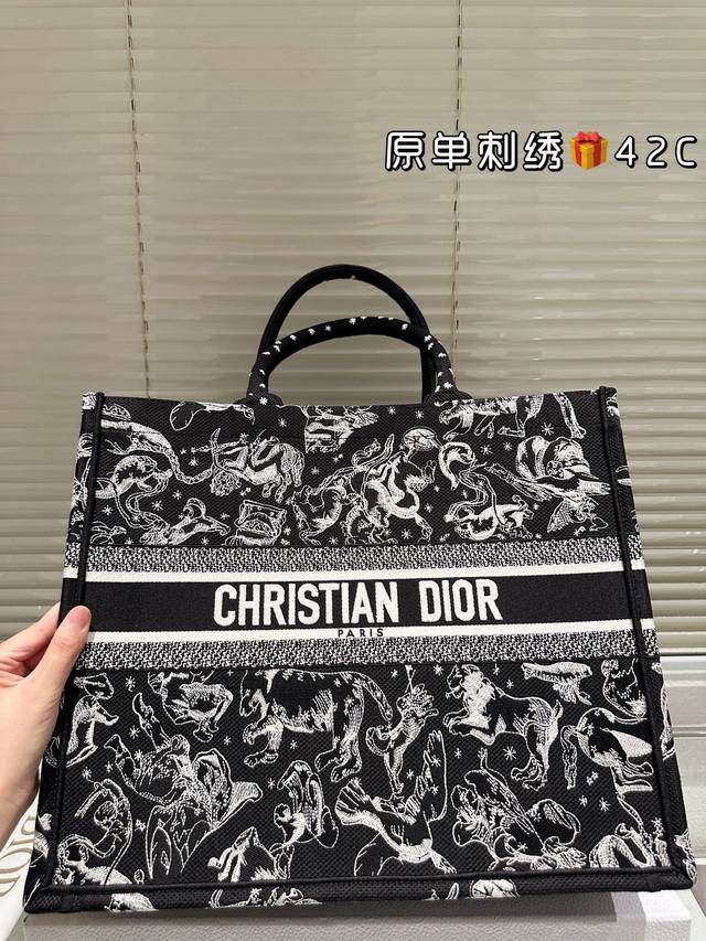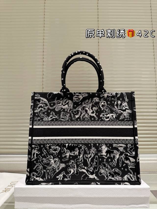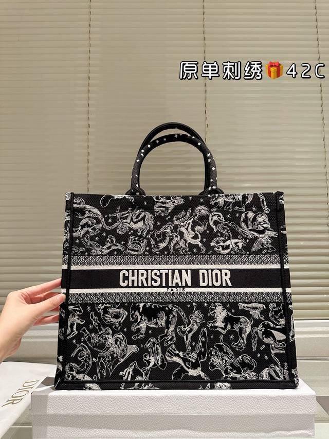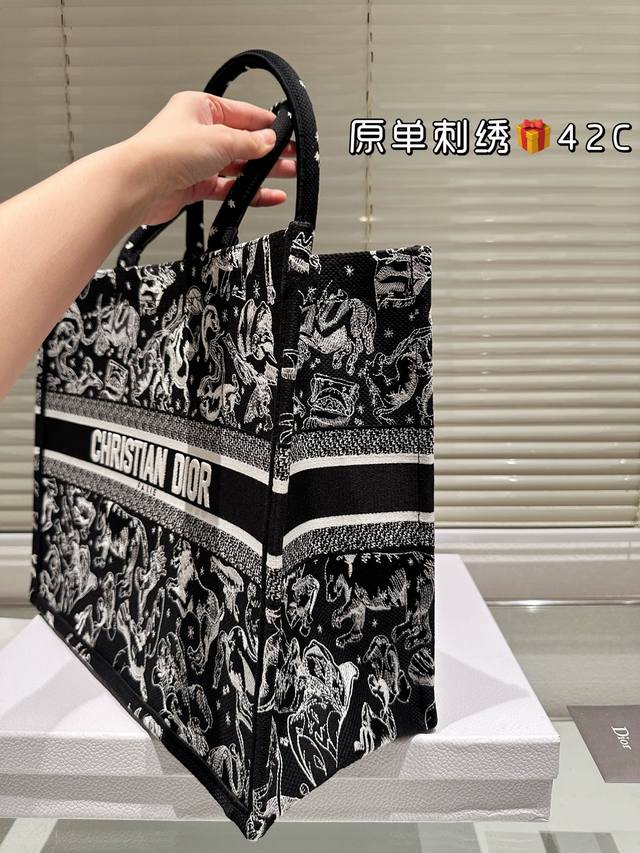 Original Embroidered Dior Jacquard Tote Bag with Liner DDD Dior Book Tote This year's favorite toy bag. It's the tote bag I use most often because it's super spacious; I put everything in it. Of course, it's also a must for creating a stylish look. This Dior monogram is my favorite color. The store had many colors and patterns, but I finally chose this color. The small size is exquisite and stylish, comes with a folding gift box. Dimensions: 42cm 36cm 26cm DDD