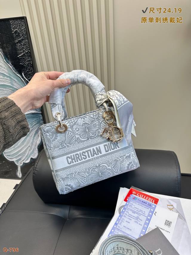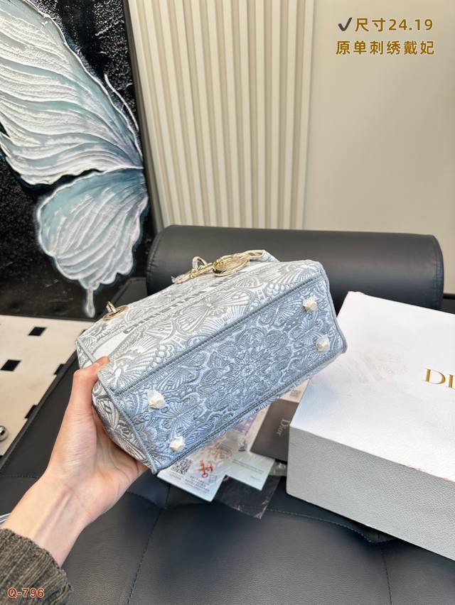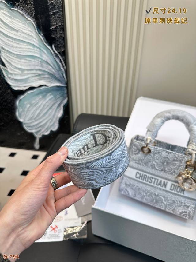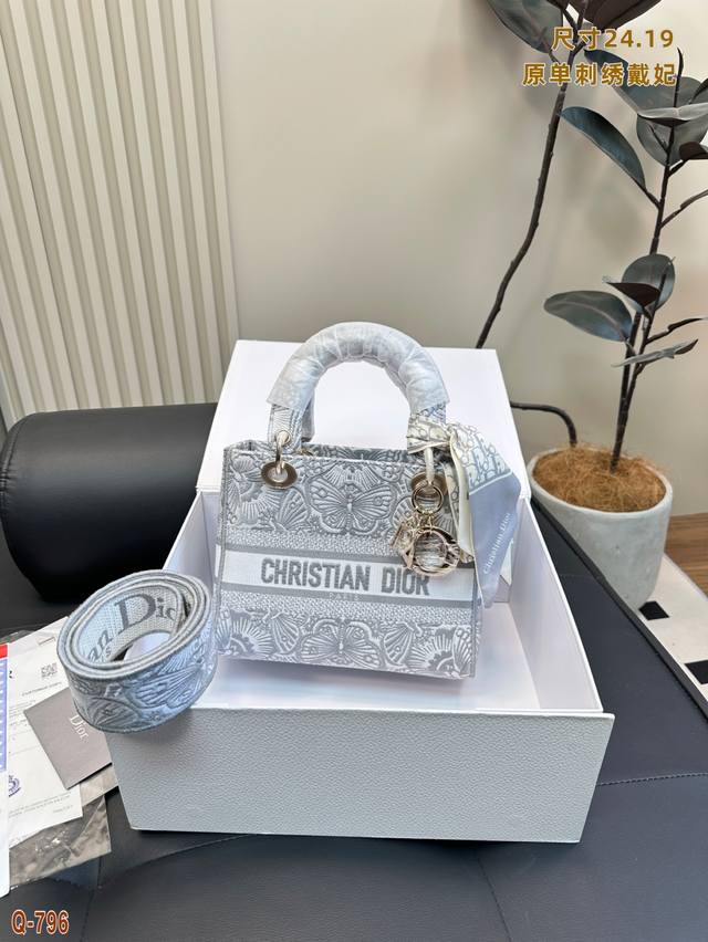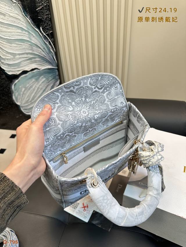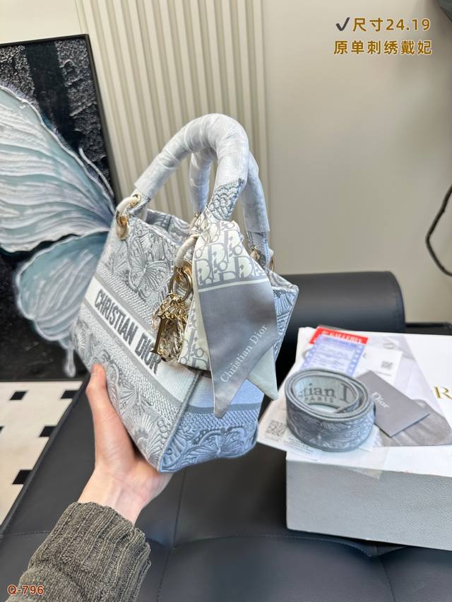 Dior 2025 New Gray Embroidered Butterfly D-Lite Princess Diana Bag Original Embroidery