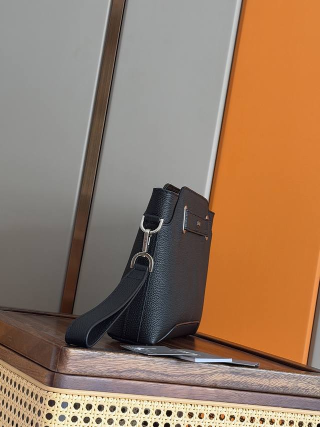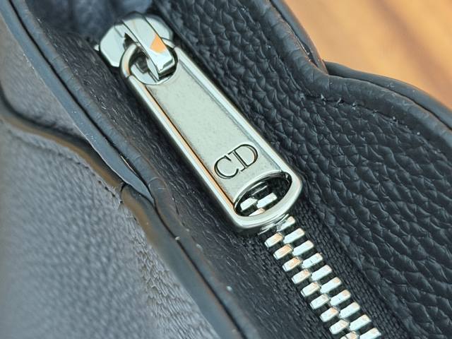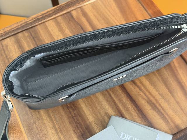 Authentic Development This Dior Normandie A5 triangle clutch is a new addition to the 2025 Winter Men's Collection, offering a fresh interpretation of Dior's classic design. Crafted from black Dior Icons calfskin leather, it features Dior Normandie's signature eyelets and a Dior leather strap, showcasing the exquisite craftsmanship of the Dior atelier. Meticulous details, such as the unique side structure, complement its elegant charm, while the spacious compartments and concealed front slip pocket add to its sophistication. It comes with a detachable grained calfskin wrist strap, allowing it to be carried by hand or placed inside the bag. Dimensions: 30 x 21 x 6 cm. Item Number: 2Llca93946. Colors: Black, Military Green, Apricot.