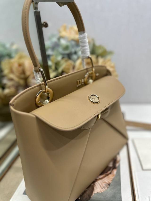 Authentic Dior 2026 Spring/Summer New Arrival# Bow Handbag in Apricot DDD The newly designed silhouette and shape, with rich color options, suits many! It strikes the perfect balance between extravagance and elegance! Its design is inspired by Mr. Dior's Cigale gown~ The three-dimensional trapezoidal body + single handle exudes an elegant and sophisticated style. The bag's appearance is relatively understated, with almost no obvious large logos. Upon closer inspection, you'll discover that Anderson has integrated the Dior logo with the round holes on the bag's handle. DDD The bag is both recognizable and not ostentatious, radiating an understated sense of luxury! It's worth mentioning that this bag also comes with a long leather shoulder strap. Especially when traveling, you can switch to the long shoulder strap, freeing your hands and making you look relaxed and casual~ DDD Model: 0737 DDD Dimensions: 28*10*22 Length*Width*Height DDD