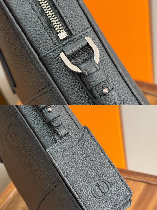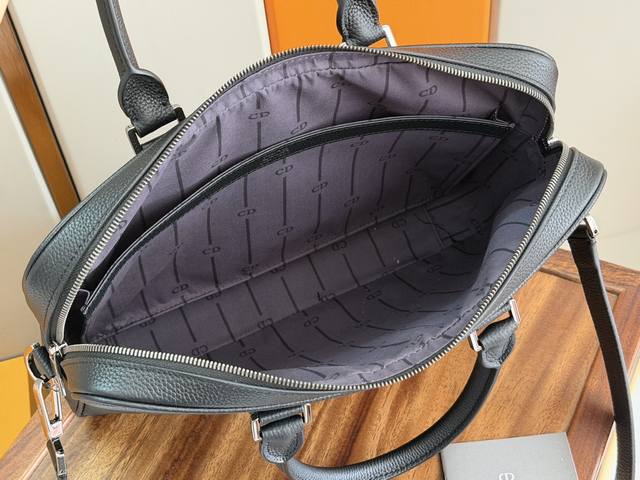 Authentic Grade DDD [Top-Tier Original Item] This Cd Icon zip-up briefcase is a new addition to the 2025 Winter Men's Collection. Its minimalist design showcases Dior's exquisite craftsmanship. Crafted from black matte grained calfskin, it features a black metal-coated Cd Icon logo on the front, complemented by a leather luggage tag suspended from a D-ring, further enhanced by an embossed Cd logo. The spacious zip-up compartment offers two slip pockets and one zip-up pocket. The Cd lining is inspired by Dior's tailoring techniques. A classic design, it features a foldable top handle and an adjustable, detachable shoulder strap, allowing it to be carried by hand, over the shoulder, or crossbody, complementing a variety of outfits. DDD Body: Cowhide leather DDD Lining: Technical fabric, cotton, cowhide leather DDD Main zippered compartment DDD 2 slip pockets and 1 internal zippered pocket DDD D-ring for hanging Dior embossed leather luggage tag DDD Top leather handle DDD Adjustable, detachable leather shoulder strap with lobster buckle and shoulder pad DDD Rear pull tab DDD Front black metallic copper alloy Dior Icon logo DDD Interior embossed Dior logo DDD Includes dust bag DDD Made in Italy DDD Dimensions: 36 x 27.5 x 5.5 cm (L x H x W) DDD Main compartment can hold 1 13-inch laptop, A4 documents, and 1 tablet DDD Shoulder strap length: 110 x 138 cm DDD Shoulder strap top to bag top length: 42 x 57 cm DDD Model: 93935 Black leather DDD