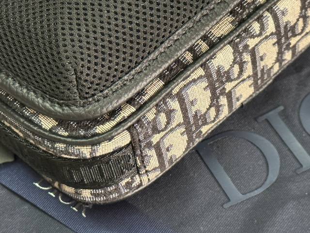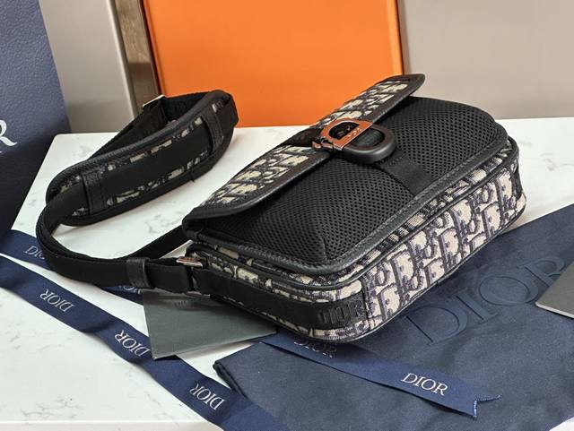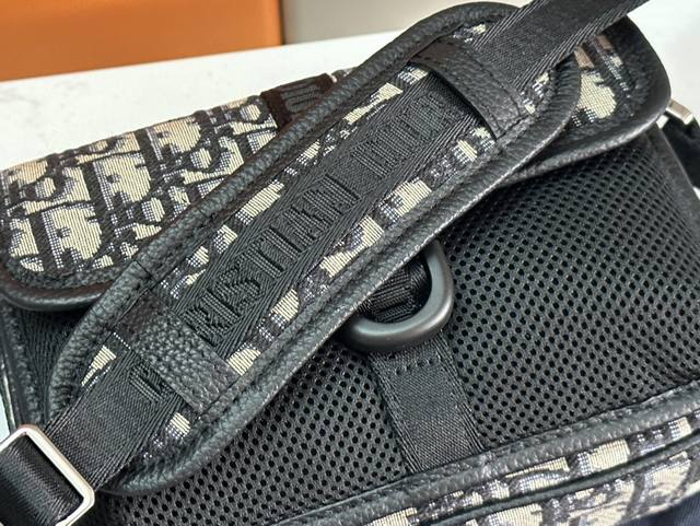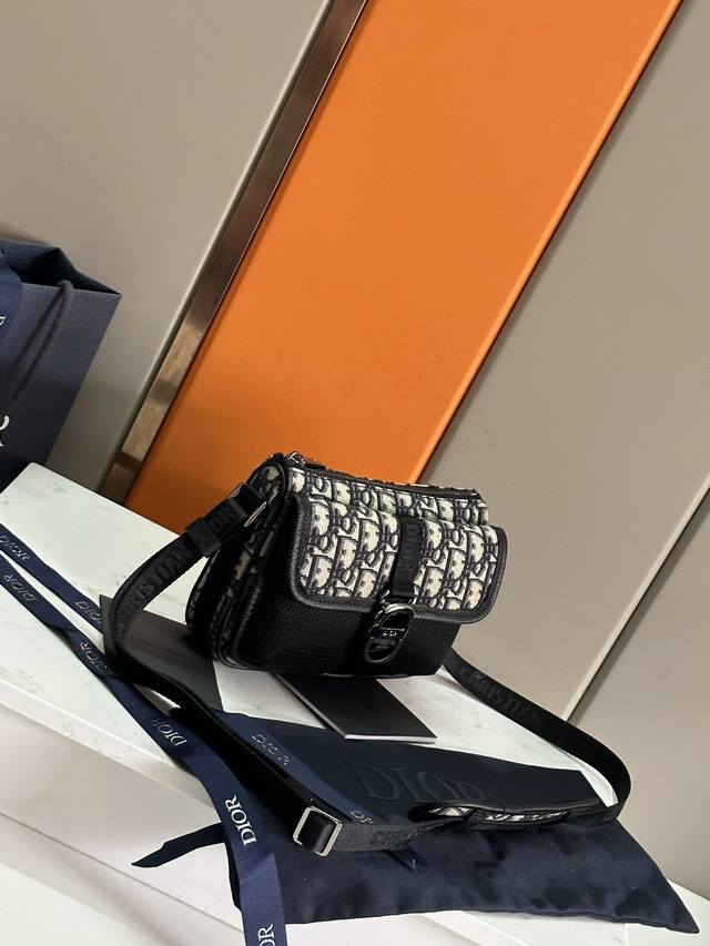This Dior 8 handbag with a shoulder strap was newly launched in the Fall 2023 Men's Collection. Its unique design embodies modern charm and a minimalist aesthetic. It is crafted from beige and black Oblique print fabric. Rigid design with zippered compartments for storing various daily items. The front flap is decorated with a Dior 8 buckle and has a mesh pocket. Mini style with an adjustable Christian Dior logo shoulder strap, which can be carried on the shoulder or crossbody.