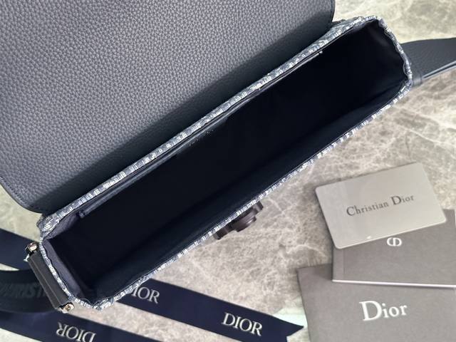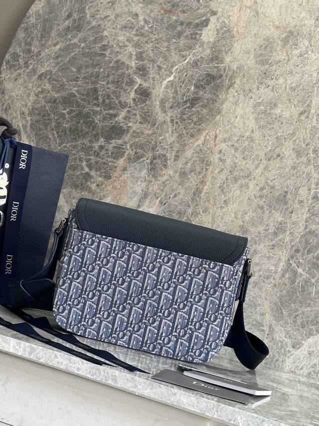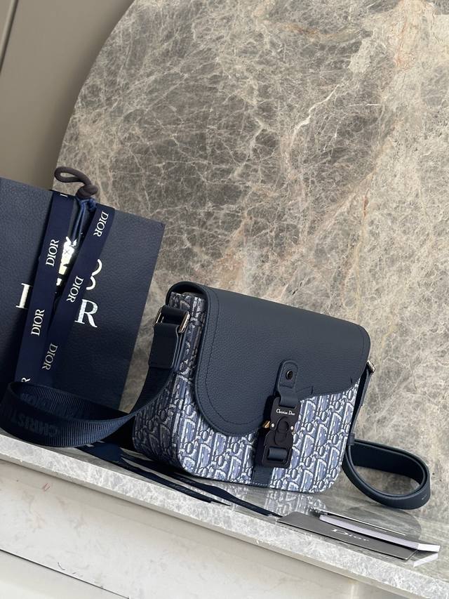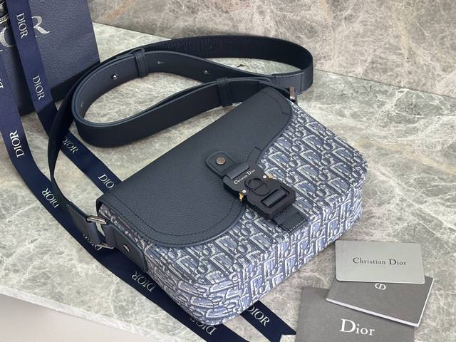 This saddle messenger bag is exquisite and stylish. Crafted from materials such as blue Oblique printed fabric, it is decorated with a saddle flap in grained cowhide leather in the same tone and embellished with aluminum buckles to enhance the style. The interior compartments are spacious and equipped with a back slip pocket to store various daily necessities. The small style is equipped with an adjustable leather and Christian Dior logo jacquard shoulder strap, which can be carried on the shoulder or crossbody.