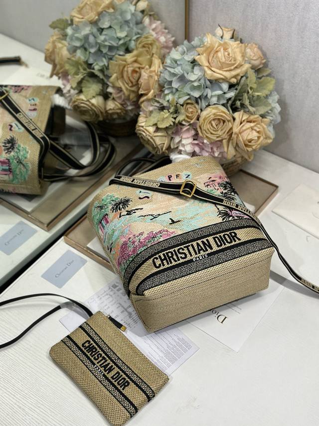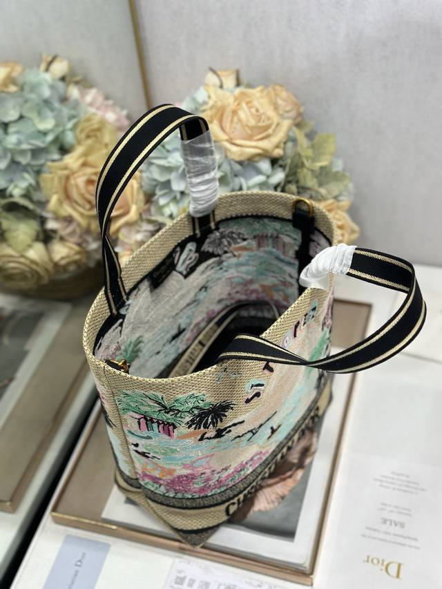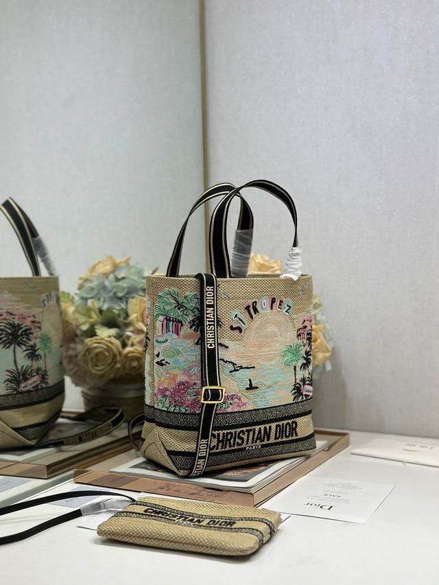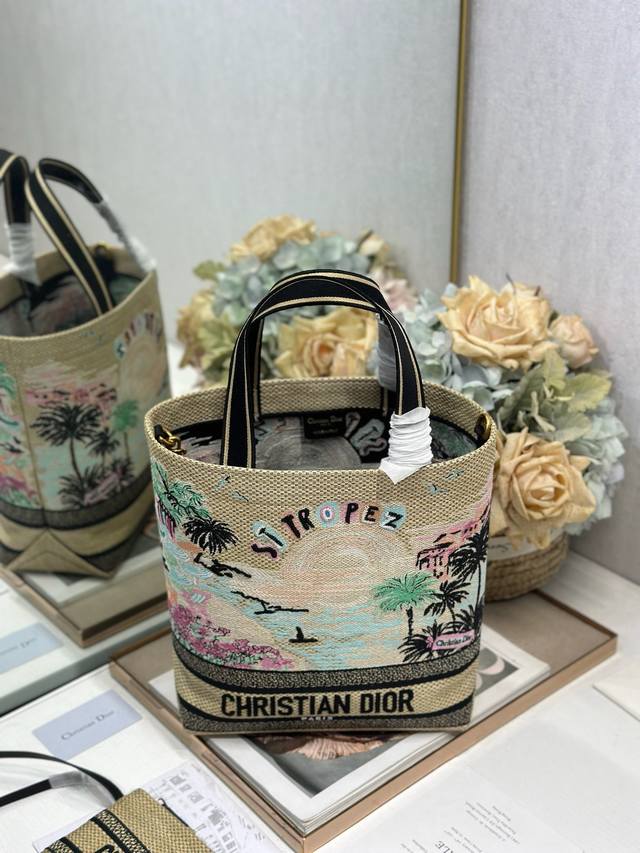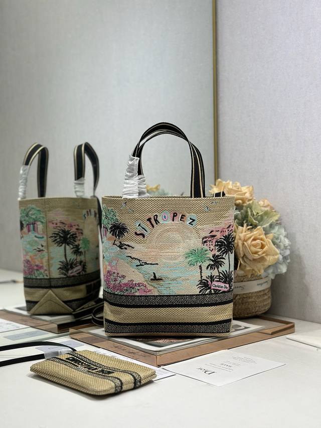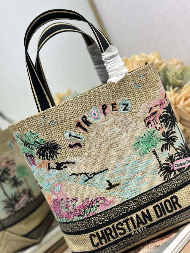 Authentic, High-Quality Dior City Postcard Resort Style Handbag (Santa Tropez Limited Edition) This stylish and practical city postcard handbag is uniquely designed. It features meticulous embroidery in various colors, combining local Saint-Tropez culture with Dior's haute couture embroidery. The spacious interior compartments can hold various daily essentials and come with a small tote bag. The small size includes an embroidered top handle and a detachable embroidered shoulder strap, allowing for hand-carrying, shoulder-carrying, or crossbody wear. Model: 1288 Dimensions: Length 25 cm, Width 12 cm, Height 29 cm