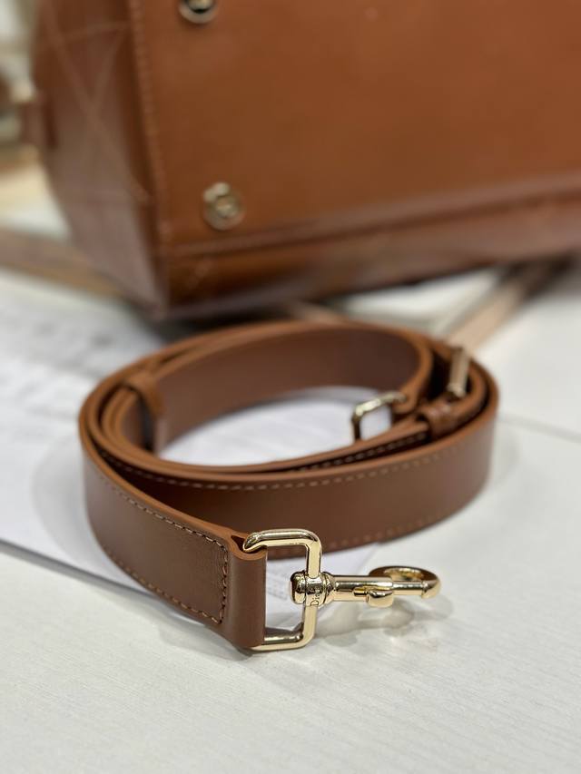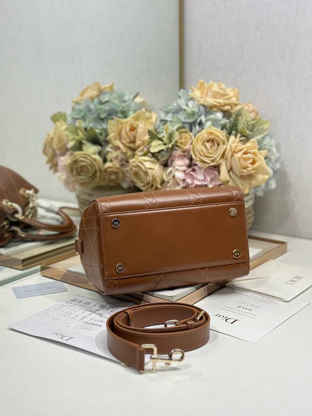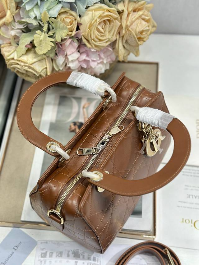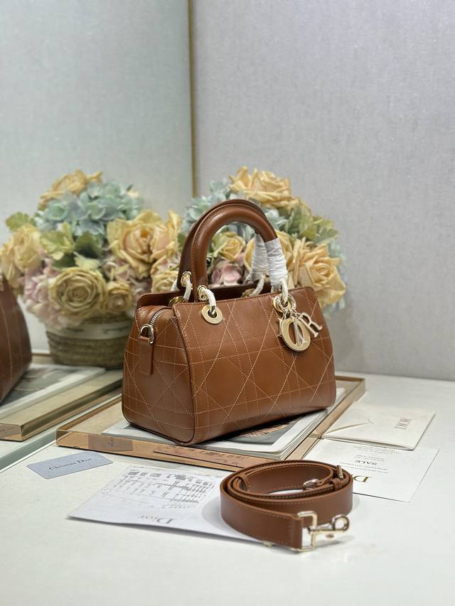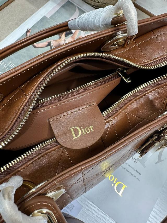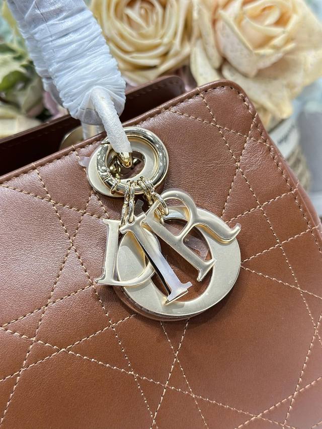 Authentic, High-Quality Ddd Lady Dior New Handbag, Small Brown Plain Texture. The Lady Dior handbag reinterprets the classic silhouette, with a chic and sophisticated curved shape that exudes style and personality, creating a striking and elegant look. Featuring a double-handle design crafted from leather and metal, it is exquisitely elegant and adorned with a Dior charm, echoing Mr. Dior's lucky symbol. Model: Ddd Dimensions: 24