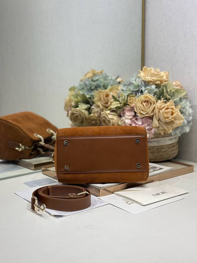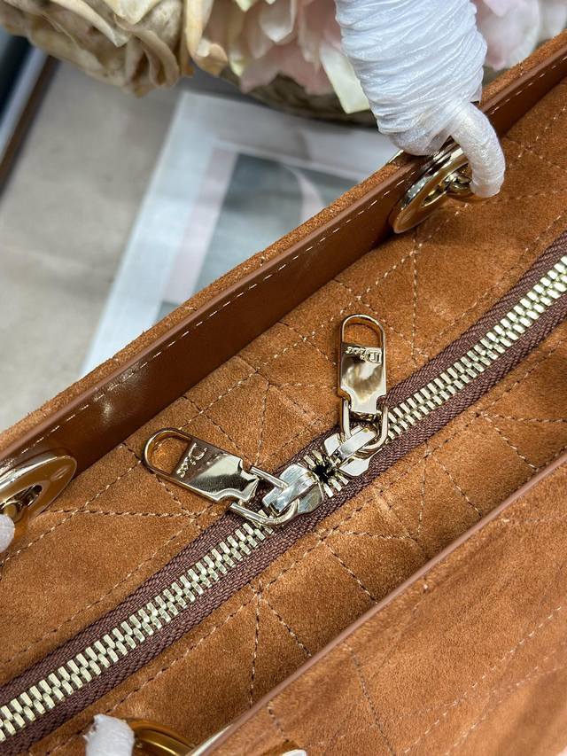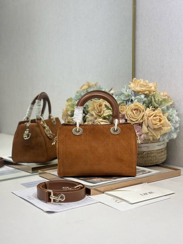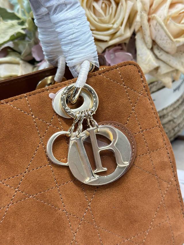 Authentic, High-Quality Ddd Lady Dior New Small Brown Velvet Handbag. The Lady Dior handbag reinterprets the classic silhouette, with a chic and sophisticated curved shape that exudes style and personality, creating a striking and elegant look. The double handles, crafted from leather and metal, are exquisitely elegant and adorned with a Dior charm, echoing Mr. Dior's lucky symbol. Model: Ddd Dimensions: 24