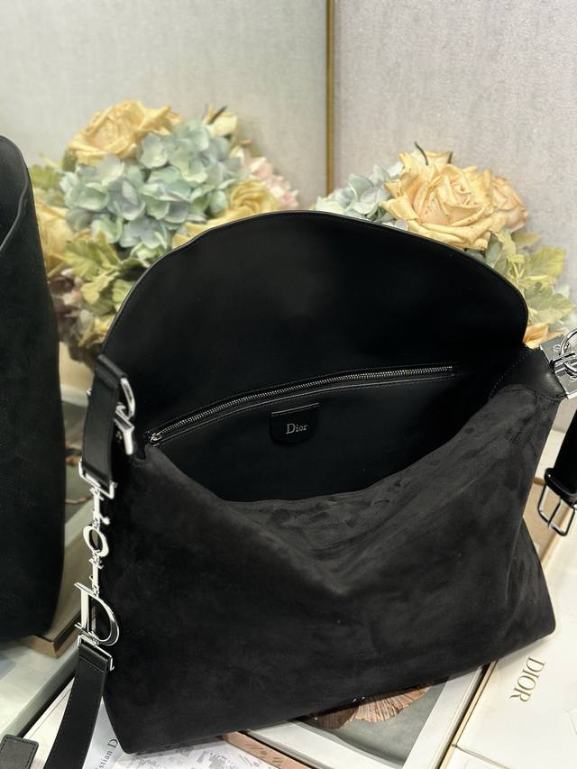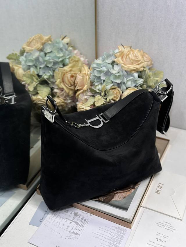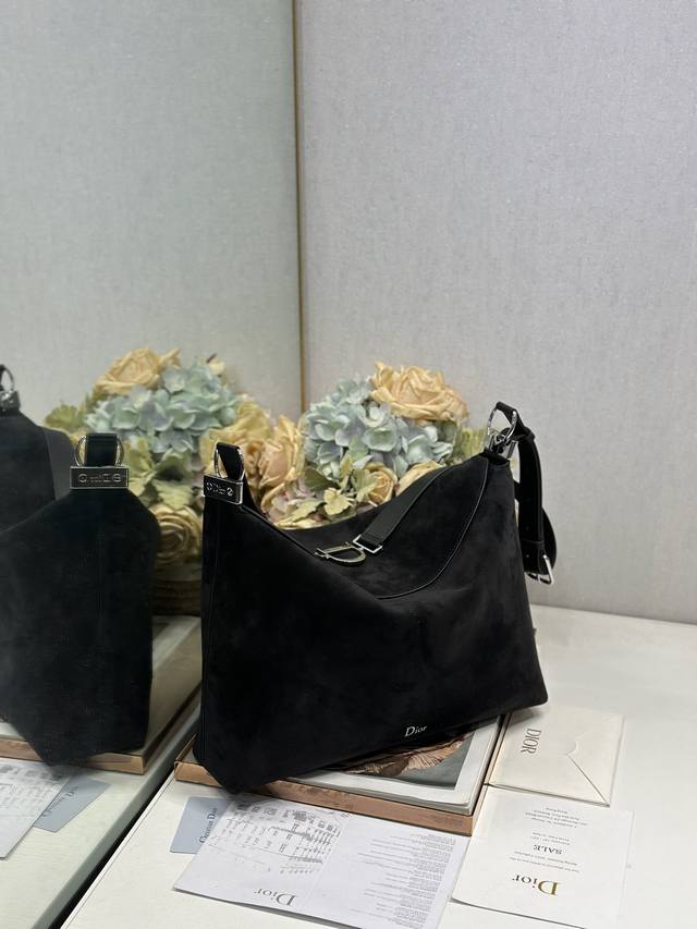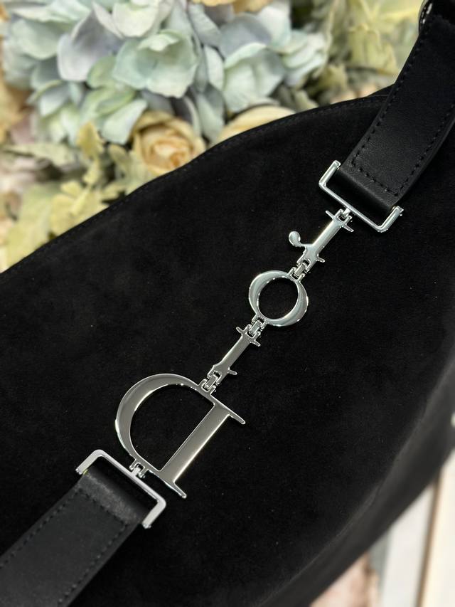 Authentic, High-Quality Version Christian Dior 2026 Spring/Summer Large Handbag Series # Black Velvet and Leather with Silver Buckle Jonathan Anderson's first women's collection as creative director of Dior. Inspired by Christian Dior's brand history archives. Dior emphasizes that this design is a collection of symbols from the fashion house's long history, expressed in a fragmented way. Fragmentation is perhaps the most fitting description of this season in Dior's official press release, indeed a design technique often used by Jonathan Anderson. The classic New Look silhouette is reinterpreted. Model: 1414 Size: 39