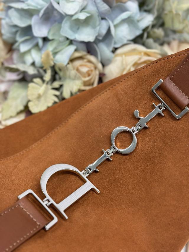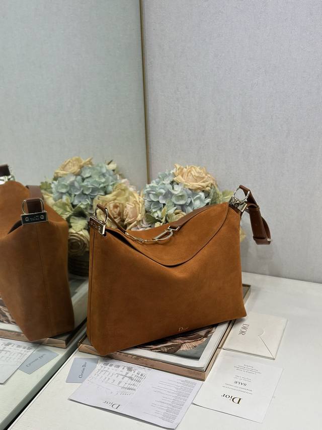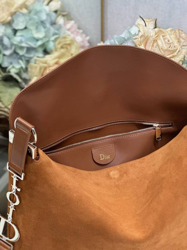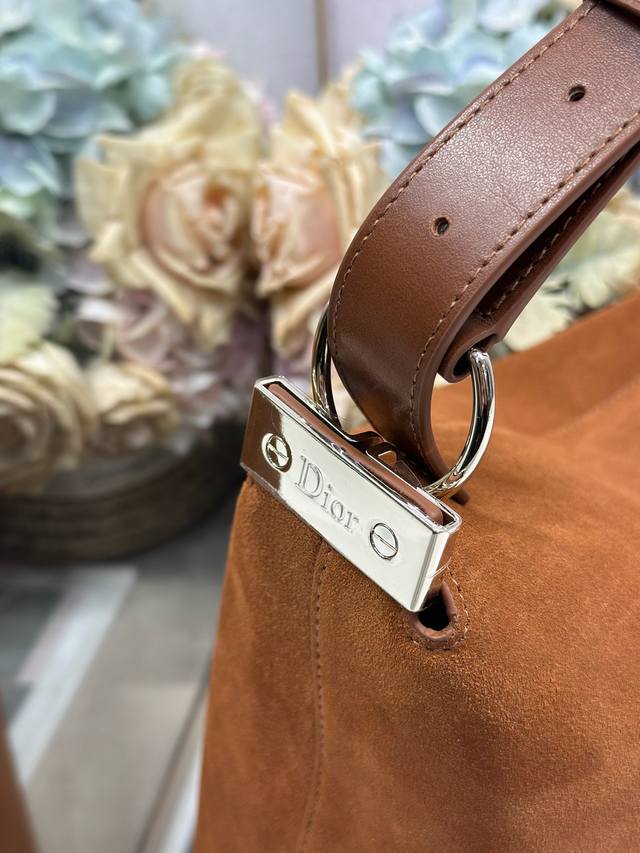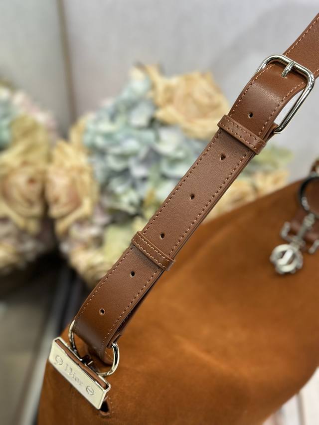 Authentic, High-Quality Version Christian Dior 2026 Spring/Summer Large Handbag Series # Brown Velvet and Leather with Light Gold Buckle Jonathan Anderson's first women's collection as creative director of Dior. Inspired by Christian Dior's brand history archives. Dior emphasizes that this design is a collection of symbols from the fashion house's long history, expressed in a fragmented way. Fragmentation is perhaps the most fitting description of this season in Dior's official press release, indeed a design technique often used by Jonathan Anderson. The classic New Look is reinterpreted. Model: 1414 Size: 39