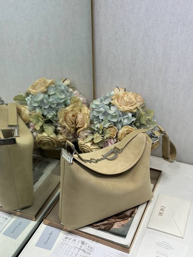 Authentic, High-Quality Version Christian Dior 2026 Spring/Summer Medium Handbag Series # Almond Velvet and Leather with Silver Buckle Jonathan Anderson's first women's collection as creative director of Dior. Inspired by Christian Dior's brand history archives. Dior emphasizes that this design is a collection of symbols from the fashion house's long history, expressed in a fragmented way. Fragmentation is perhaps the most fitting description of this season in Dior's official press release, indeed a design technique often used by Jonathan Anderson. The classic New Look silhouette is reinterpreted. Model: 1412 Size: 33