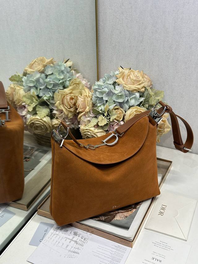 Authentic, High-Quality Version Christian Dior 2026 Spring/Summer Medium Handbag Series # Brown Velvet and Leather with Silver Hardware Jonathan Anderson's first women's collection as creative director of Dior. Inspired by Christian Dior's brand history archives. Dior emphasizes that this design is a collection of symbols from the fashion house's long history, expressed in a fragmented way. Fragmentation is perhaps the most fitting description of this season in Dior's official press release, indeed a design technique often used by Jonathan Anderson. The classic New Look silhouette is reinterpreted. Model: 1412 Size: 33