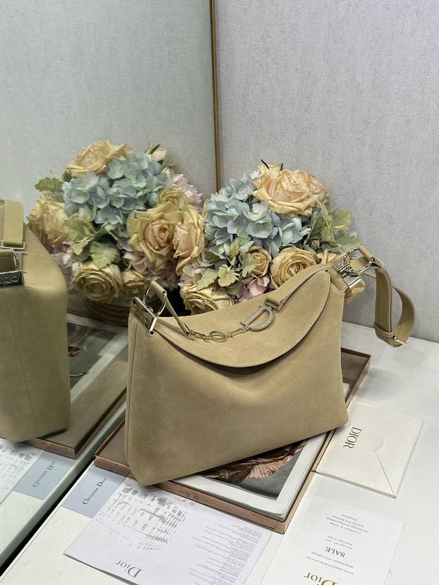 Authentic, High-Quality Version Christian Dior 2026 Spring/Summer Medium Handbag Series # Almond Velvet and Leather with Light Gold Buckle Jonathan Anderson's first women's collection as creative director of Dior. Inspired by Christian Dior's brand history archives. Dior emphasizes that this design is a collection of symbols from the fashion house's long history, expressed in a fragmented way. Fragmentation is perhaps the most fitting description of this season in Dior's official press release, indeed a design technique often used by Jonathan Anderson. The classic New Look silhouette is reinterpreted. Model: 1412 Size: 33