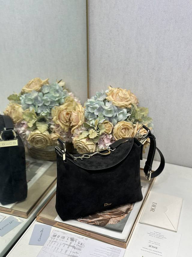 Authentic, High-Quality Version Christian Dior 2026 Spring/Summer Small Handbag Series # Black Velvet and Leather with Light Gold Buckle Jonathan Anderson's first women's collection as creative director of Dior. Inspired by Christian Dior's brand history archives. Dior emphasizes that this design is a collection of symbols from the fashion house's long history, expressed in a fragmented way. Fragmentation is perhaps the most fitting description of this season in Dior's official press release, indeed a design technique often used by Jonathan Anderson. The classic New Look silhouette is reinterpreted. Model: 1411 Size: 28