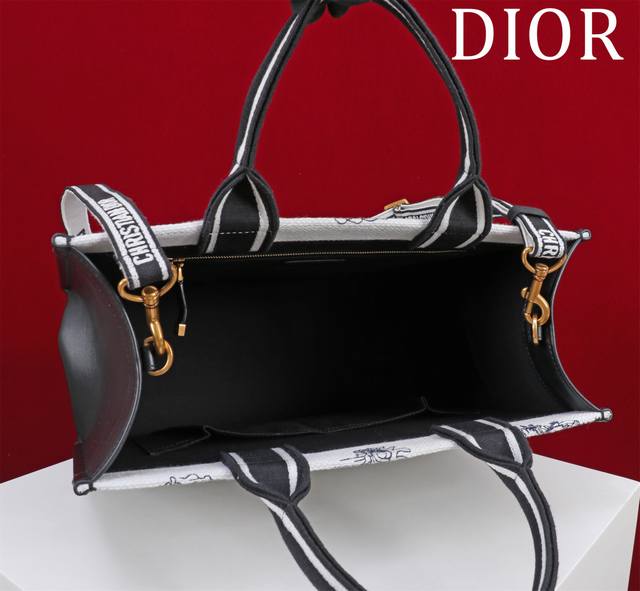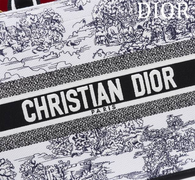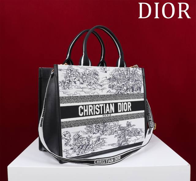 Dior New Tote Shoulder Strap Ddd 132407# Mountain View Ddd Size: Medium 36*28*16Cm DDD This Book Tote handbag elegantly interprets Maria Grazia Chiuri's classic style. Refined and elegant, it features an Oblique print, paired with gold metallic stitching and cream-colored calfskin leather, showcasing a chic style. The interior includes a zip pocket and multiple slip pockets for neatly organizing everyday essentials, while the Christian Dior Paris logo on the front adds a touch of sophistication. The practical medium size comes with an adjustable, detachable embroidered shoulder strap, highlighting Dior's exquisite craftsmanship, and can be carried by hand or over the shoulder. Material: Outer fabric: fabric, cowhide leather; Lining: fabric, cowhide leather; Front adorned with the Christian Dior Paris logo; Adjustable, detachable embroidered shoulder strap; Internal zip pocket; Two internal slip pockets; Includes dust bag.