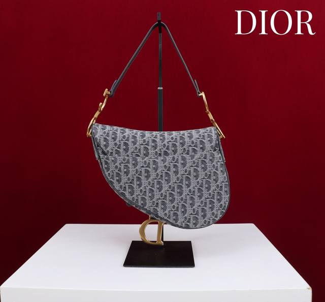 / Dior Saddle Bag with Long Shoulder Strap #Grey Denim Size: 25.5*20*6.5Cm Model M