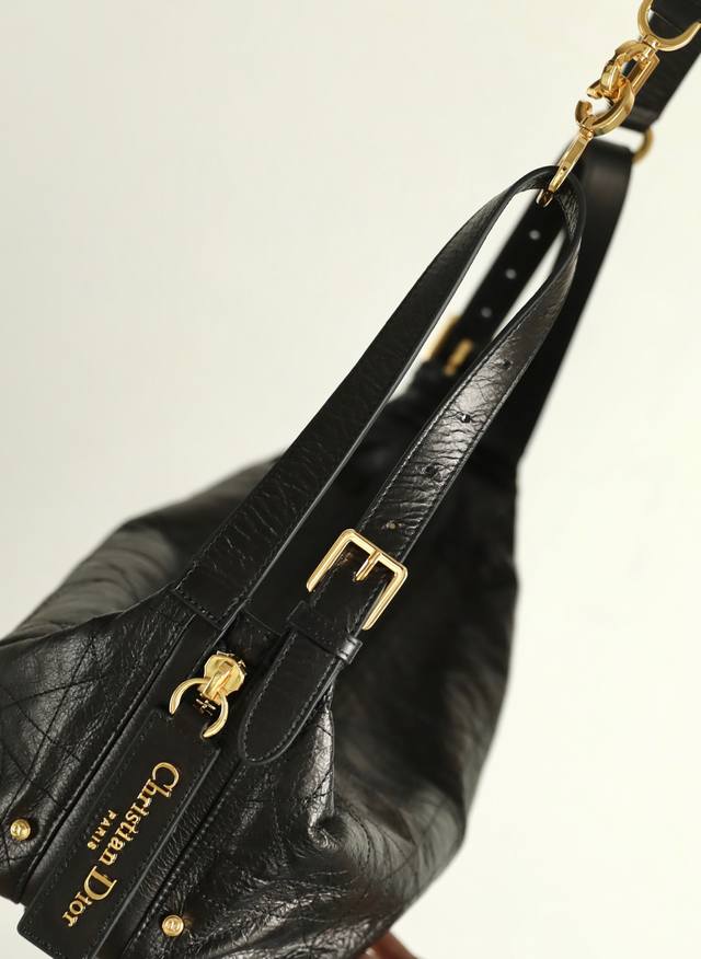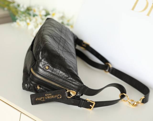 DJ Handbag DDD Soft to the touch, this bag offers a modern interpretation of the dumpling bag silhouette. Crafted from black pleated calfskin leather, it features flat, oversized cannage stitching, a fresh take on Dior's classic pattern. A zip pocket in the main compartment adds a touch of sophistication, while two decorative side pockets with large leather zipper pulls adorned with the Christian Dior Paris logo. DDD Outer Material: Calfskin Leather Lining: Fabric DDD Excluding embellishments and stitching Zipper Closure DDD Dimensions: 33 x 16 x 15 cm DDD