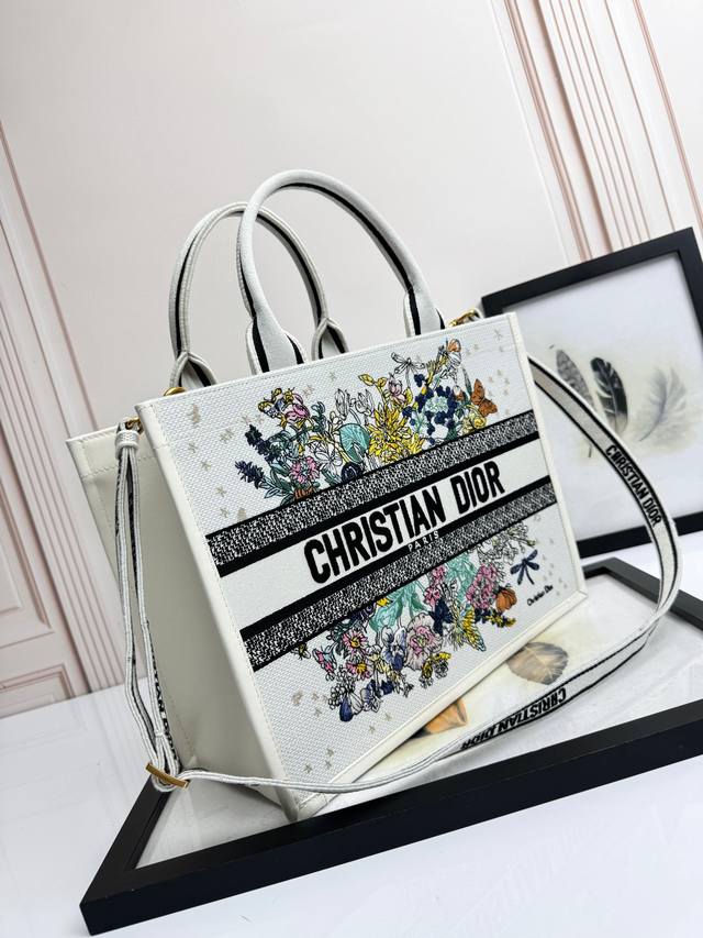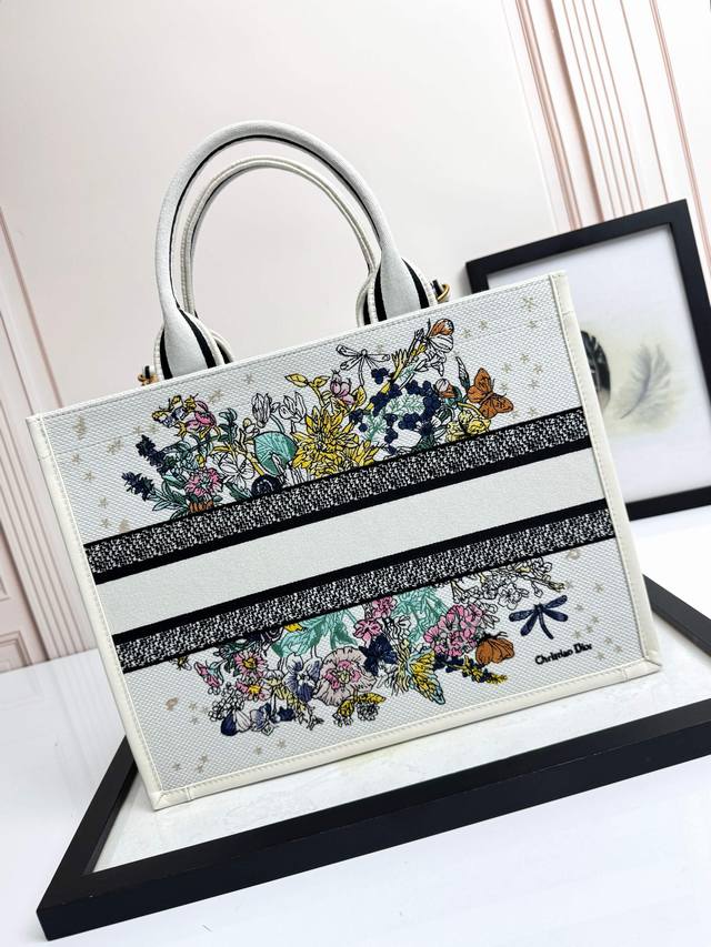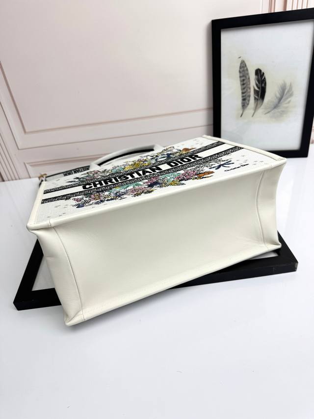 Embroidered Calfskin Leather Colorful Dragonfly Medium Size Ddd Top-tier Imported Fabric Ddd High-quality hardware, imported stitching Ddd This Dior Book Tote handbag elegantly interprets Maria Grazia Chiuri 's classic style. The elegant design showcases classic blue Oblique print embroidered calfskin leather. The interior features a zip pocket and slip pocket for neatly organizing everyday essentials. The practical small size comes with an adjustable, detachable embroidered shoulder strap, highlighting Dior's exquisite craftsmanship, and can be carried by hand or over the shoulder. Ddd Model: D1324, Size: 36.5 X 28 X 17.5 Cm, Exclusive Real Product Photography 669750 Comes with Original Packaging Gift Box DDD