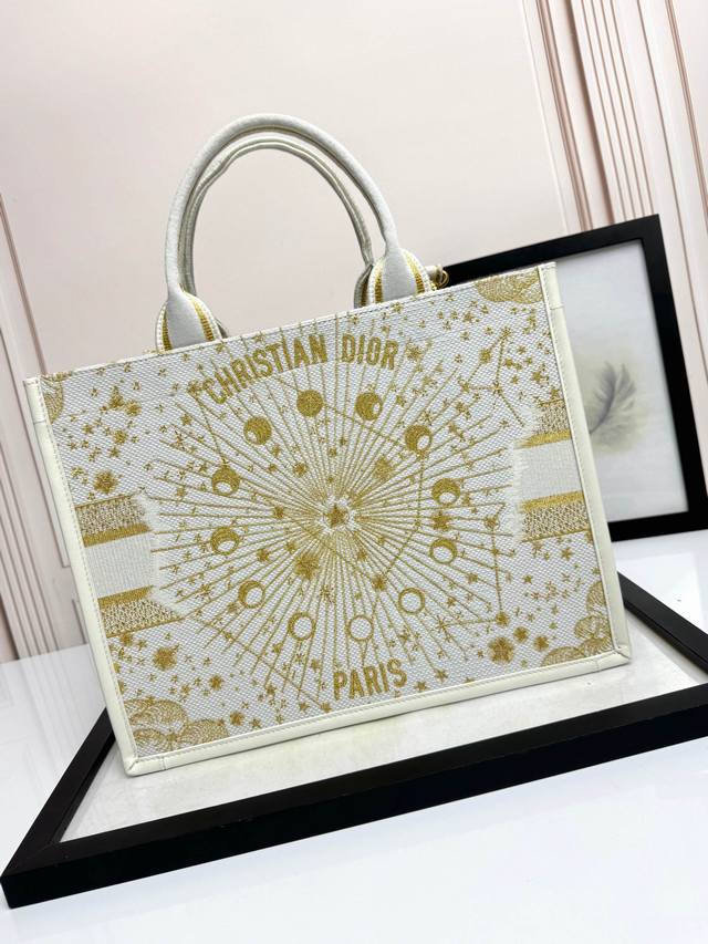Embroidered Calfskin Leather Gold Planet Medium Size Ddd Top-tier Imported Fabric Ddd High-quality hardware, imported stitching Ddd This Dior Book Tote handbag elegantly interprets Maria Grazia Chiuri's classic style. The elegant design showcases classic blue Oblique print embroidery and calfskin leather. The interior features a zip pocket and slip pocket for neatly organizing everyday essentials. The practical small size comes with an adjustable, detachable embroidered shoulder strap , highlighting Dior's exquisite craftsmanship, and can be carried by hand or over the shoulder. Ddd Model: D1324, Size: 36.5 X 28 X 17.5 Cm, Exclusive Real Product Photography 669750 Comes with Original Packaging Gift Box DDD