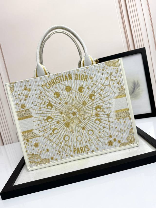 Embroidered Calfskin Leather Gold Star Bead Medium Size Ddd Top-tier Imported Fabric Ddd High-quality Hardware, Imported Stitching Ddd This Dior Book Tote handbag elegantly interprets Maria Grazia Chiuri's classic style. The elegant design showcases classic blue Oblique print embroidered calfskin leather. The interior features a zip pocket and slip pocket for neatly organizing everyday essentials. The practical small size comes with an adjustable, detachable embroidered shoulder strap, highlighting Dior's exquisite craftsmanship, and can be carried by hand or over the shoulder. Ddd Model: D1324, Size: 36.5 X 28 X 17.5 Cm, Exclusive Real Product Photography 669700 Comes with Original Packaging Gift Box DDD