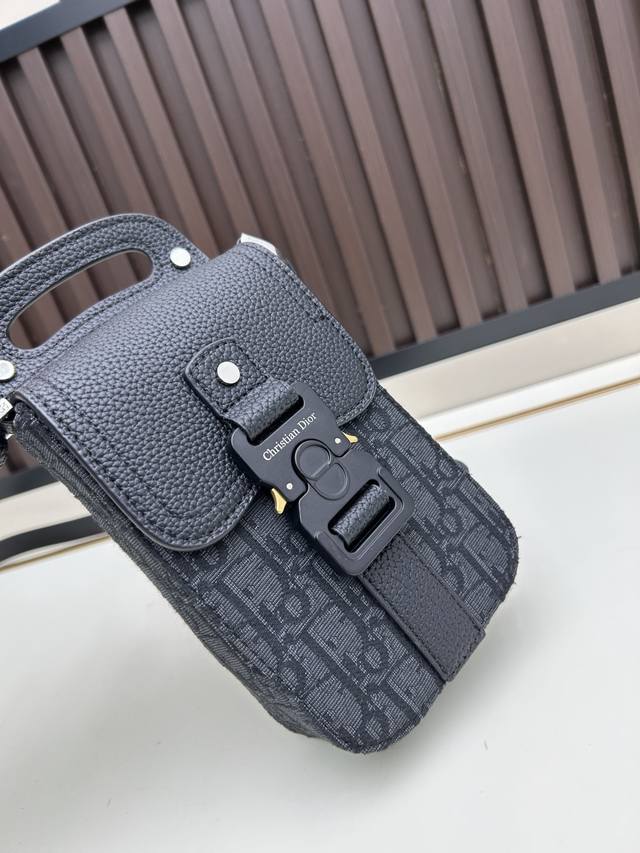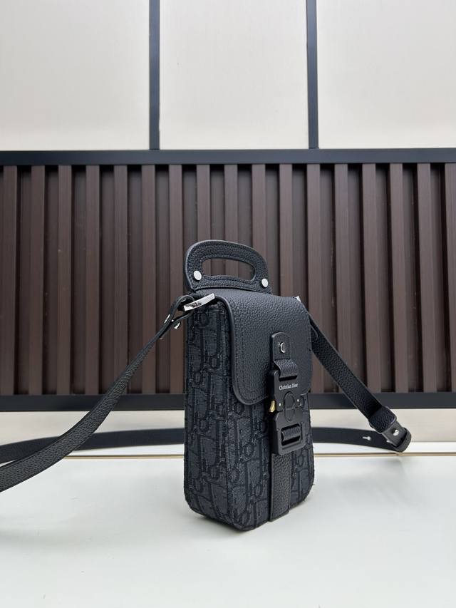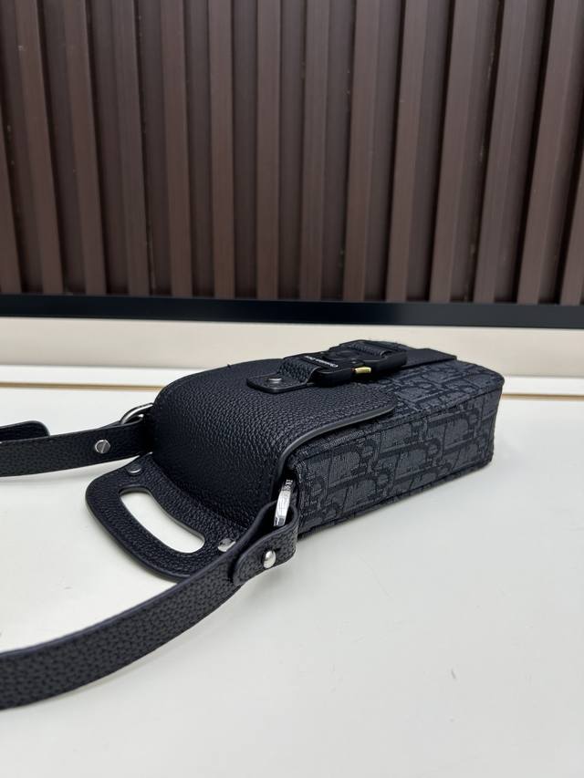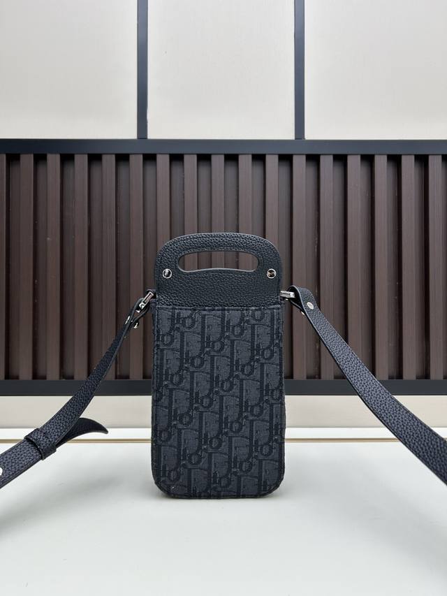 Factory direct, top-quality original leather, genuine single item with full boutique packaging and box. Dior saddle-shaped vertical phone bag, black grained calfskin. Outer material: Grained black calfskin. Lining: High-density cotton linen. "Dior" logo engraved inside. Closure: Saddle buckle flap closure. Internal structure: Logo embossed in gold foil. Shoulder strap: Adjustable leather shoulder strap. Hardware: Metal hardware. Dimensions: 11 x 18 x 3.2 cm (L x H x W). Packaging: Dust bag + blue box. Can hold an iPhone 13 Pro Max. Model: 9042.