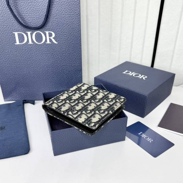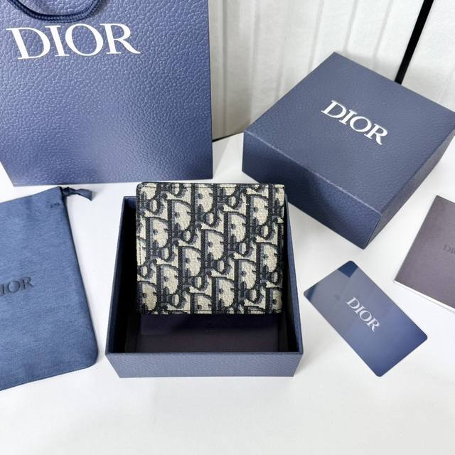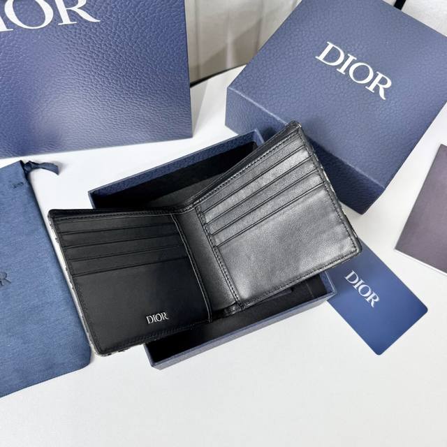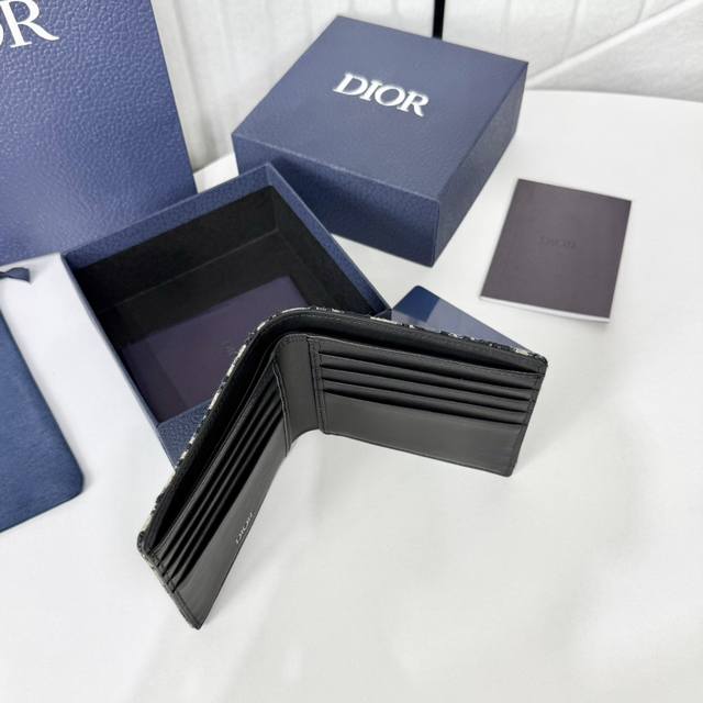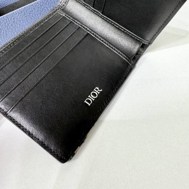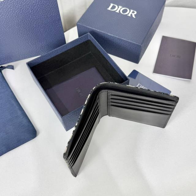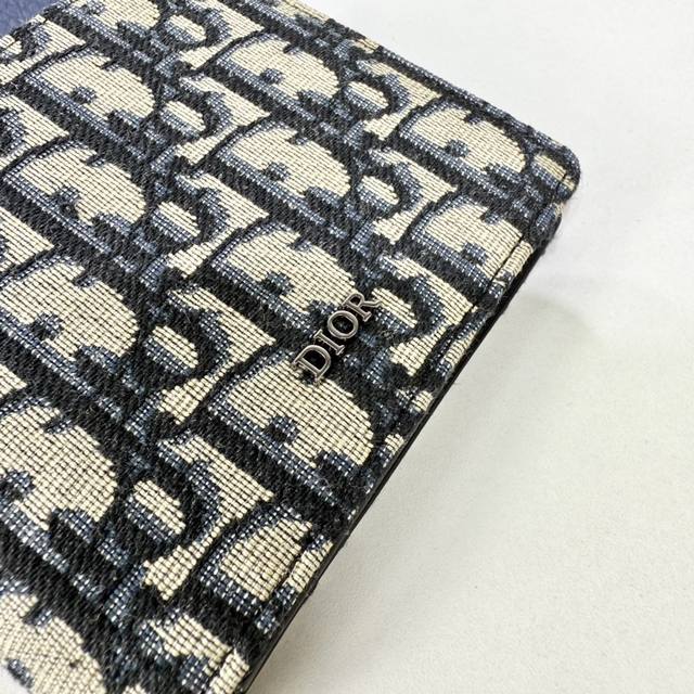 This wallet exudes elegance. Crafted from beige and black Oblique print fabric, it features a metal-plated copper alloy Dior signature on the front. The interior features a double cash compartment, two flat compartments, and eight card slots. The bi-fold design fits easily into a pocket or handbag.