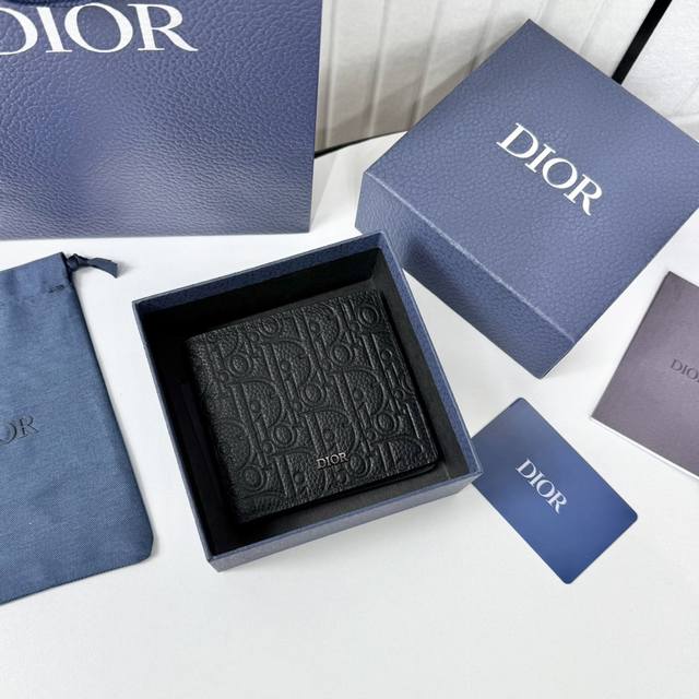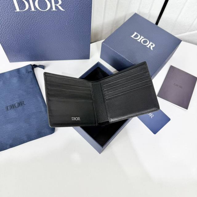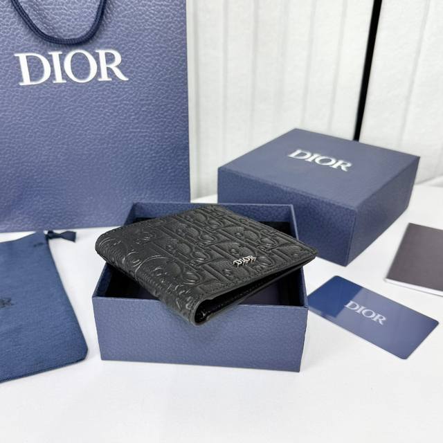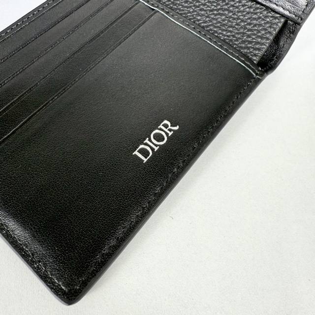 This bifold wallet features a sophisticated and elegant design. Dior Gravity-effect leather utilizes an embossed technique to delicately depict the iconic pattern on black cowhide, showcasing the exquisite craftsmanship of the Dior ateliers. The interior features a double cash compartment, two receipt pockets, and eight card slots. The bifold design fits easily into a pocket or handbag.