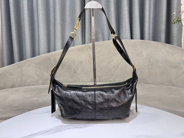 Journey Hobo Bag 6603 Hand-Claw Texture Ddd This D-Journey handbag is a new addition to this season's collection, making a stunning debut at the Dior Spring/Summer 2025 ready-to-wear show. It features a soft texture and a modern interpretation of the dumpling bag silhouette. Crafted from wrinkled patent calfskin leather, it's adorned with flat, oversized cannage stitching, a fresh take on Dior's classic pattern. The main compartment includes a zip pocket, while two side pockets feature large leather zipper pulls adorned with vintage gold-finished Christian Dior Paris logos, perfect for organizing small everyday essentials. The small size comes with an adjustable top handle and a leather shoulder strap, allowing for hand-carrying, shoulder-carrying, or crossbody wear