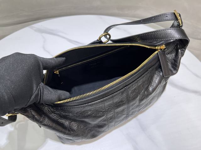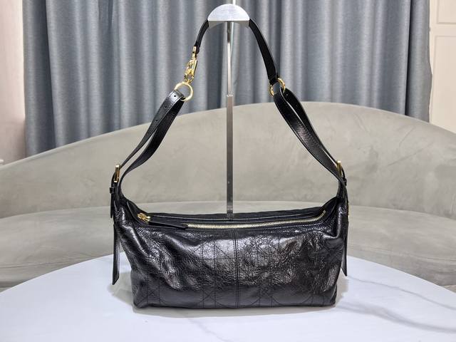 Journey Hobo Bag Medium 6604 Hand-claw Texture Ddd This D-Journey handbag is a new addition to this season's collection, making a stunning debut at the Dior Spring/Summer 2025 ready-to-wear show. It features a soft texture and a modern reinterpretation of the dumpling bag silhouette. Crafted from wrinkled patent calfskin leather, it's adorned with flat, oversized cannage stitching, a fresh take on Dior's classic pattern. The main compartment includes a zip pocket, while two side pockets feature large leather zipper pulls adorned with vintage gold-finished Christian Dior Paris logos, perfect for organizing small everyday essentials. The medium size comes with an adjustable top handle and a leather shoulder strap, allowing for hand-carrying, shoulder-carrying, or crossbody wear, making it ideal for everyday styling. Ddd Style Number: 2417 Ddd Dimensions: 33 x 16 x 15 cm (Length x Height x Width) DDD